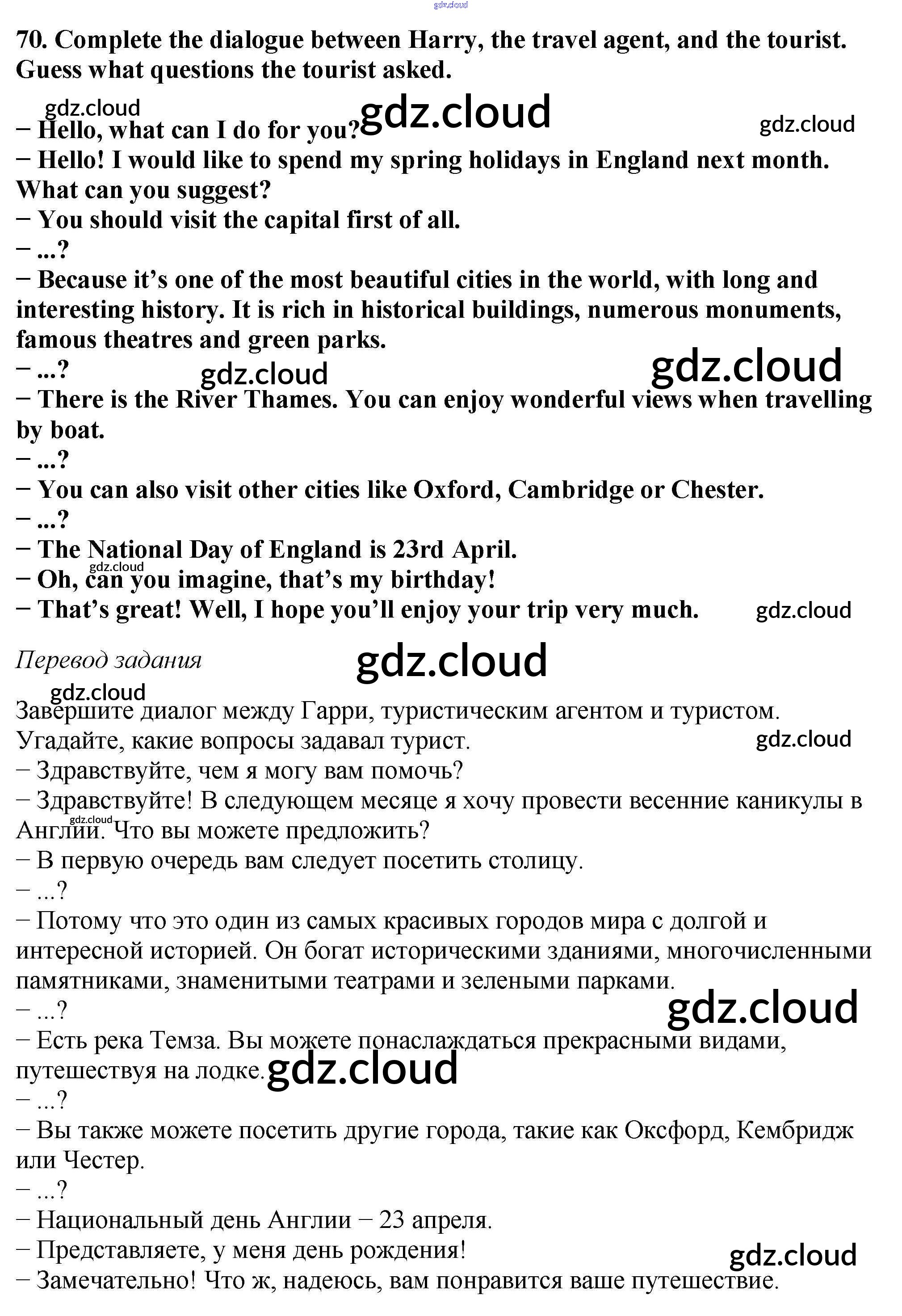 Ответ на задание 70 Учебник Английский язык  за 6 (шестой) класс Биболетова, Денисенко, Трубанева Enjoy English  2015, 2019