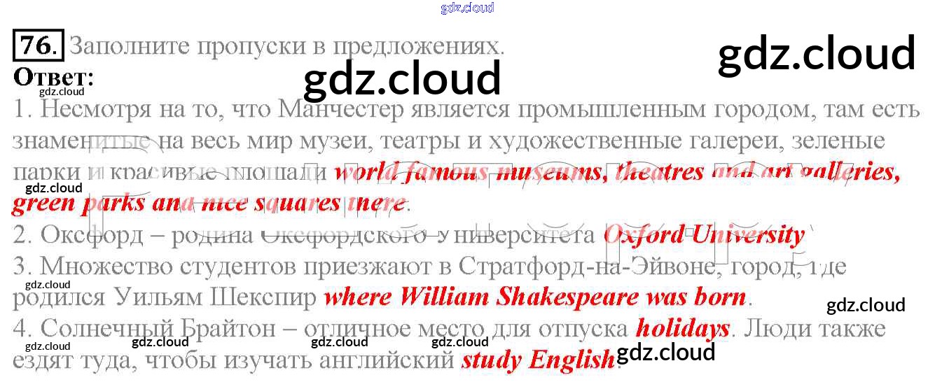 Ответ на задание 76 Учебник Английский язык  за 6 (шестой) класс Биболетова, Денисенко, Трубанева Enjoy English  2015, 2019