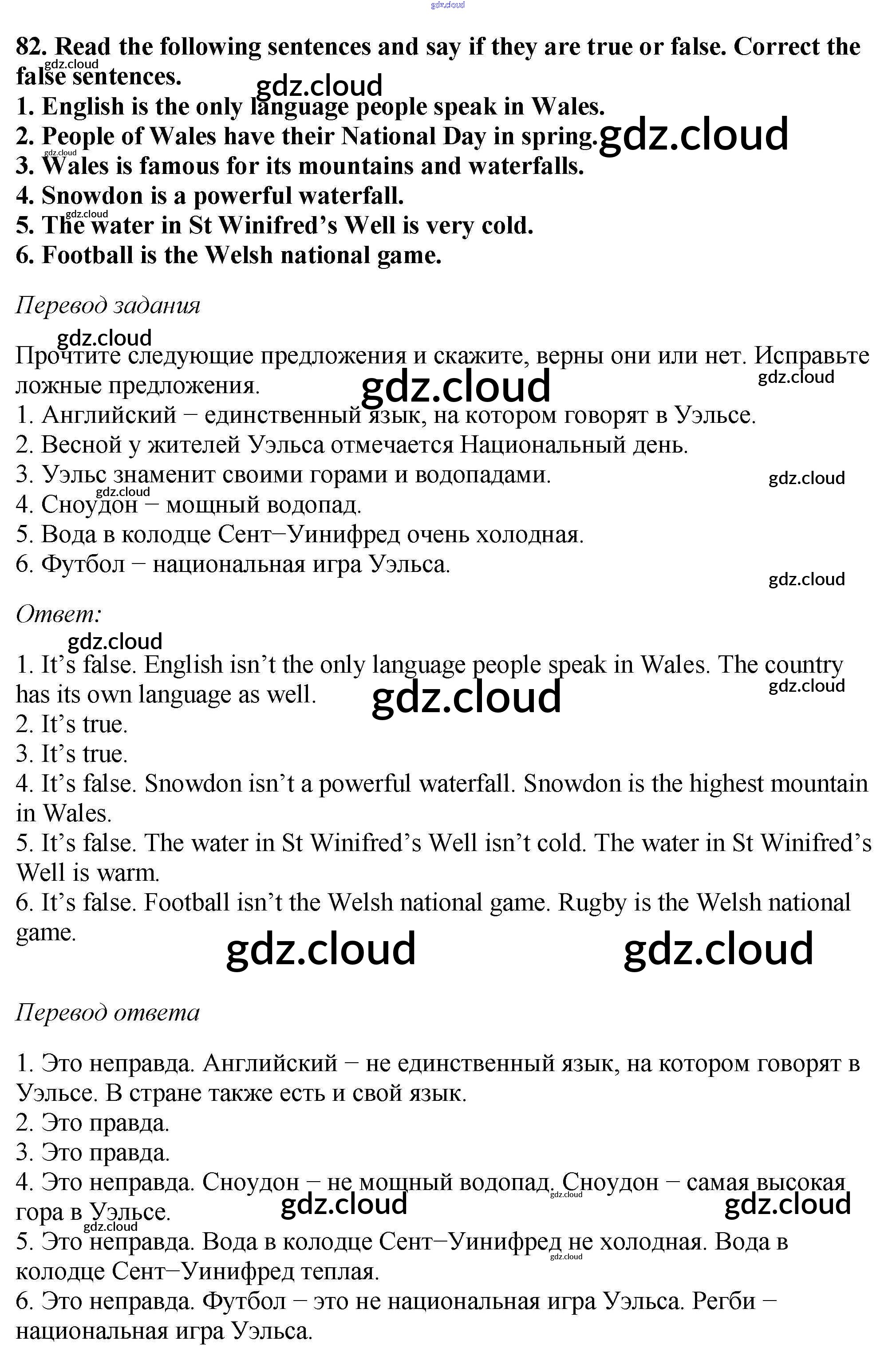Ответ на задание 82 Учебник Английский язык  за 6 (шестой) класс Биболетова, Денисенко, Трубанева Enjoy English  2015, 2019