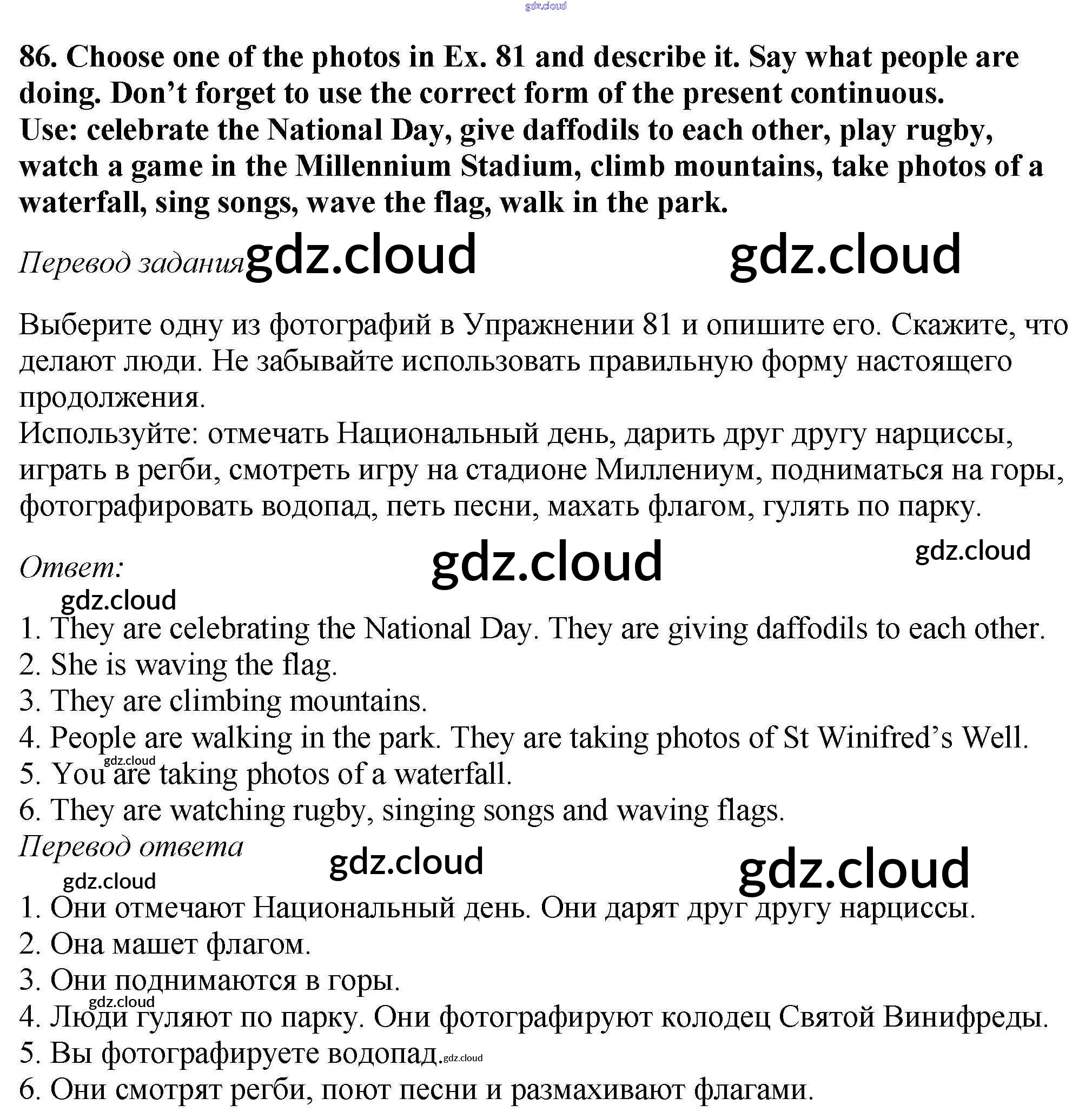 Ответ на задание 86 Учебник Английский язык  за 6 (шестой) класс Биболетова, Денисенко, Трубанева Enjoy English  2015, 2019