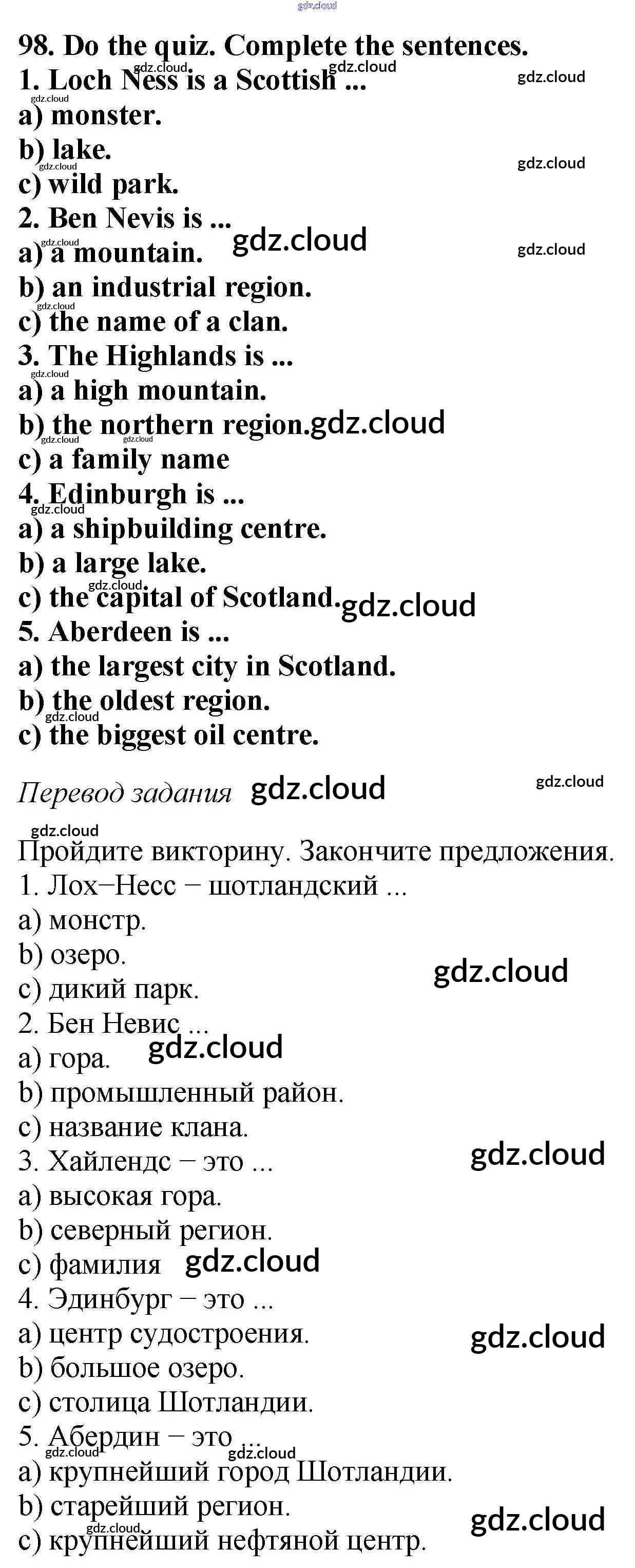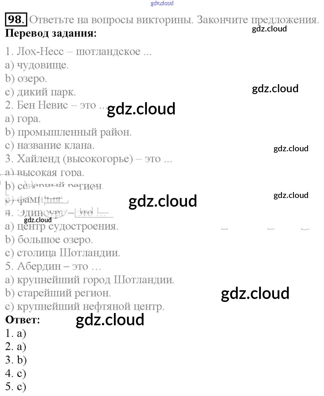 Ответ на задание 98 Учебник Английский язык  за 6 (шестой) класс Биболетова, Денисенко, Трубанева Enjoy English  2015, 2019