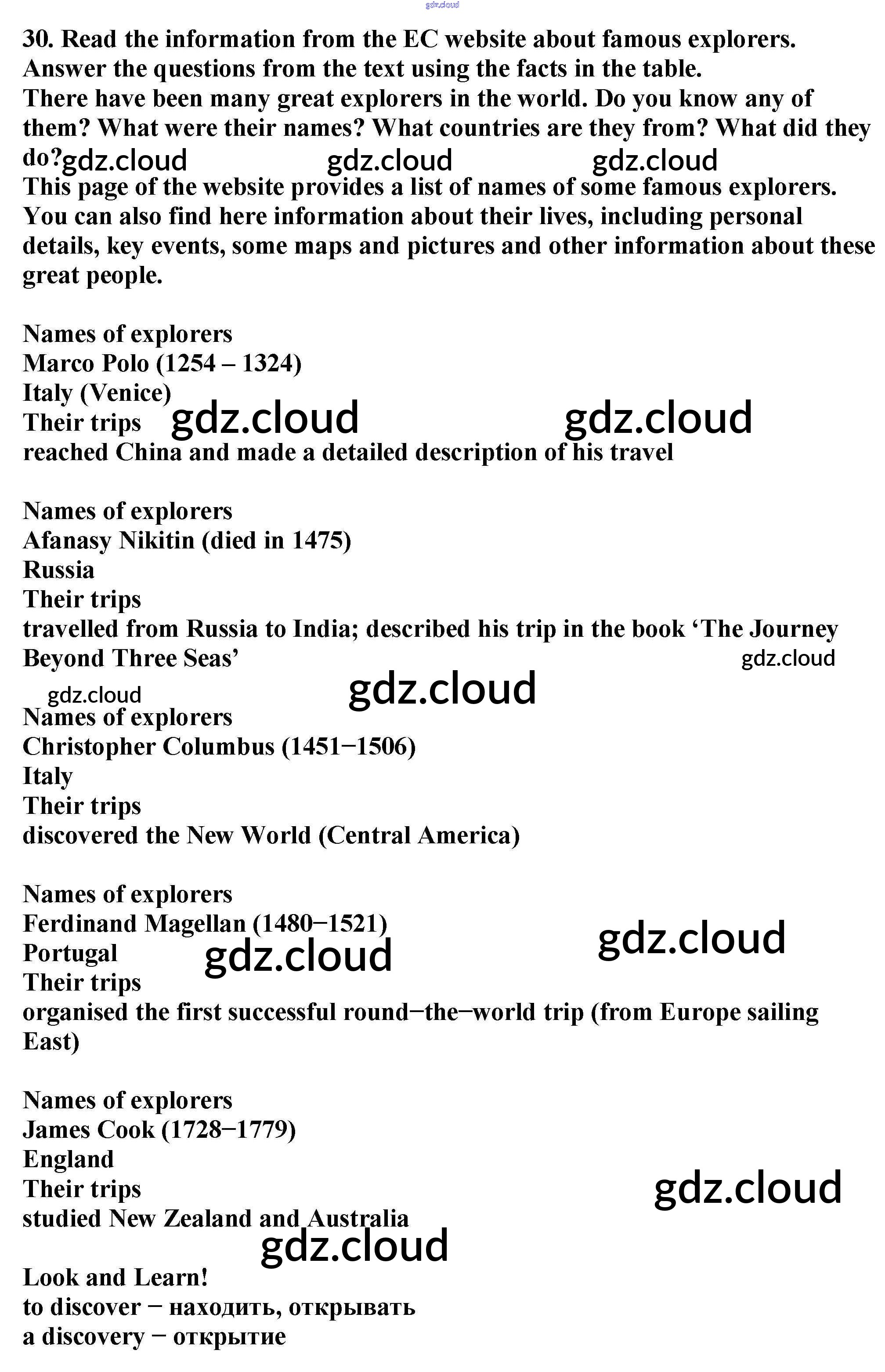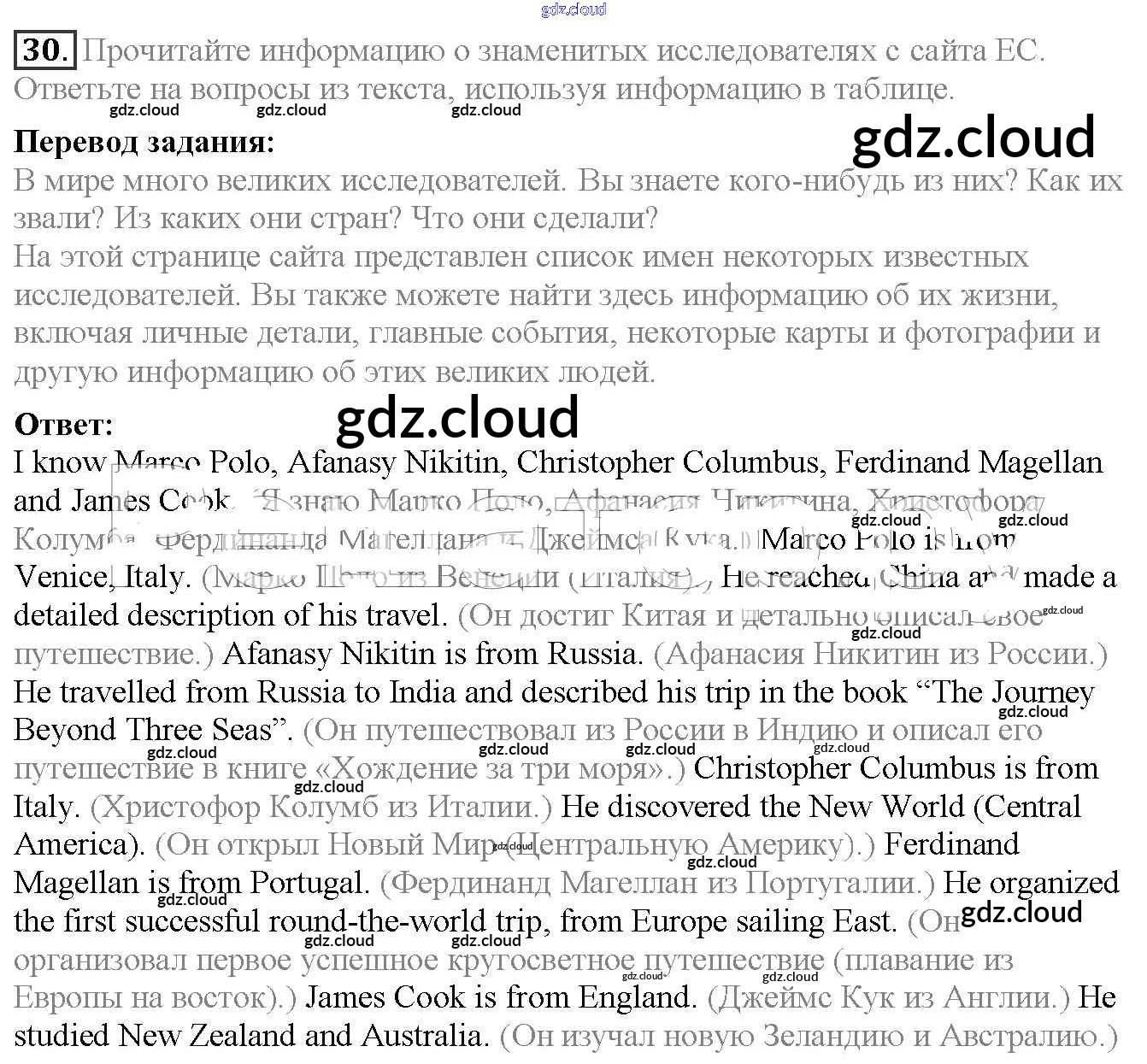 Ответ на задание 30 Учебник Английский язык  за 6 (шестой) класс Биболетова, Денисенко, Трубанева Enjoy English  2015, 2019