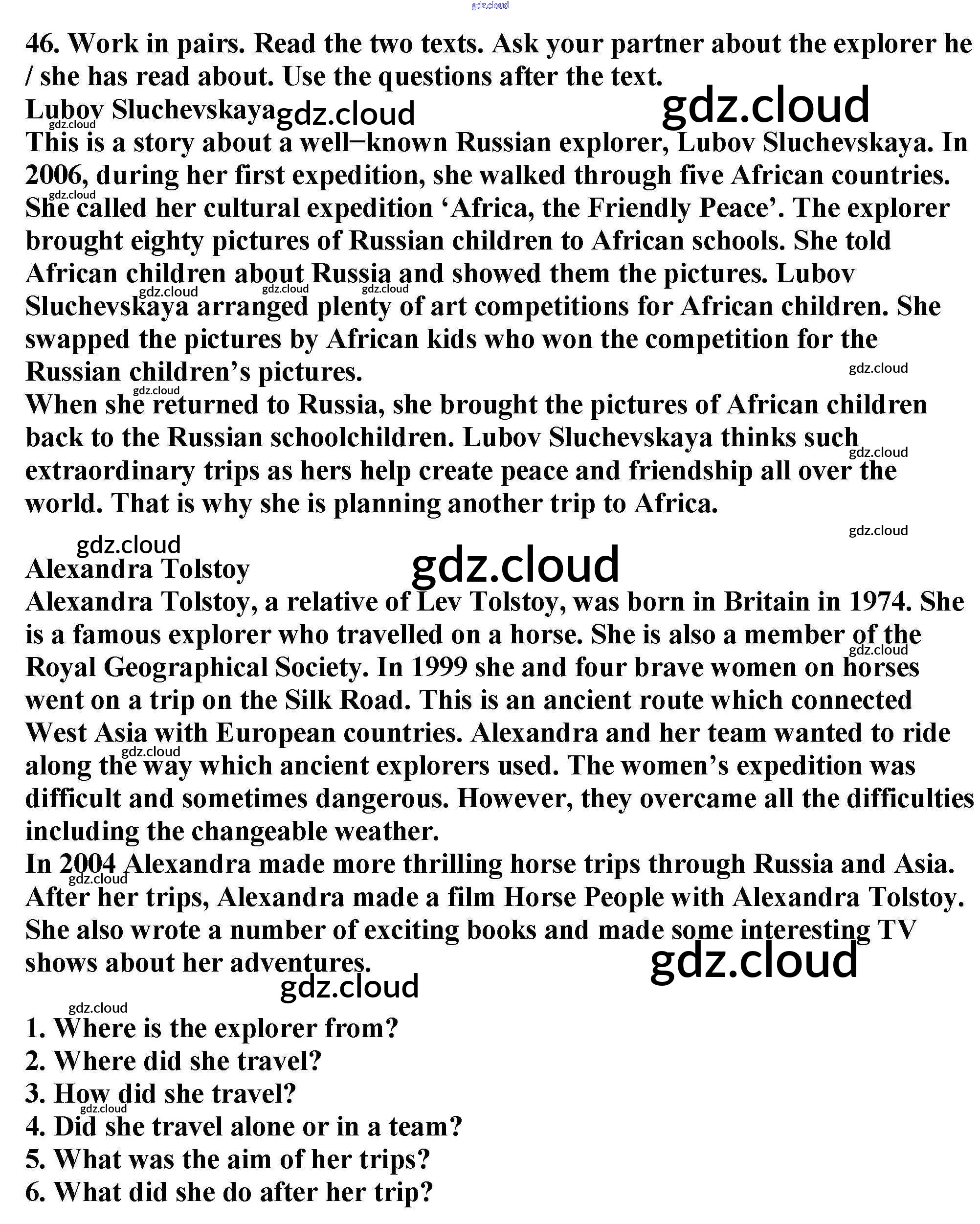 Ответ на задание 46 Учебник Английский язык  за 6 (шестой) класс Биболетова, Денисенко, Трубанева Enjoy English  2015, 2019
