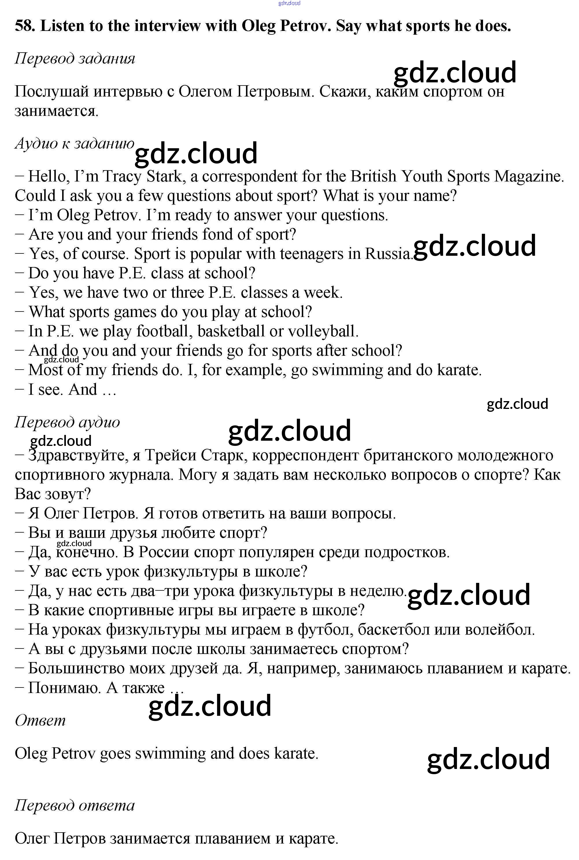 Ответ на задание 58 Учебник Английский язык  за 6 (шестой) класс Биболетова, Денисенко, Трубанева Enjoy English  2015, 2019