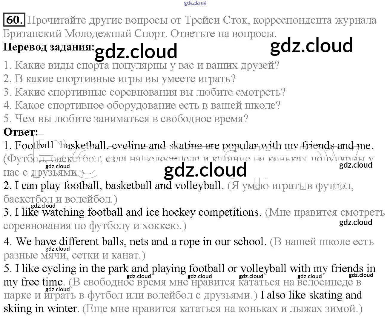 Ответ на задание 60 Учебник Английский язык  за 6 (шестой) класс Биболетова, Денисенко, Трубанева Enjoy English  2015, 2019