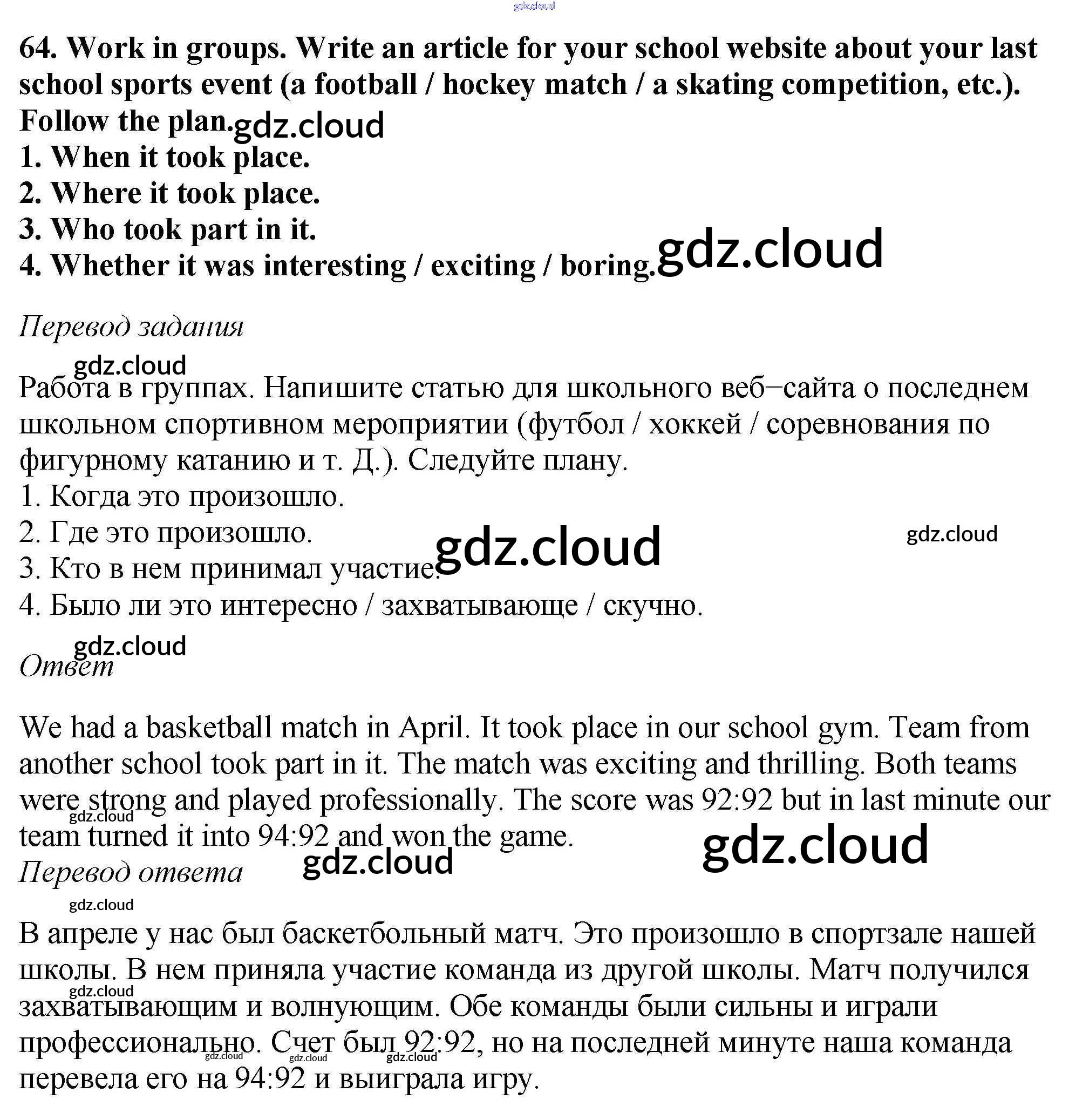 учебник 2019 / unit 4 / exercise / 64