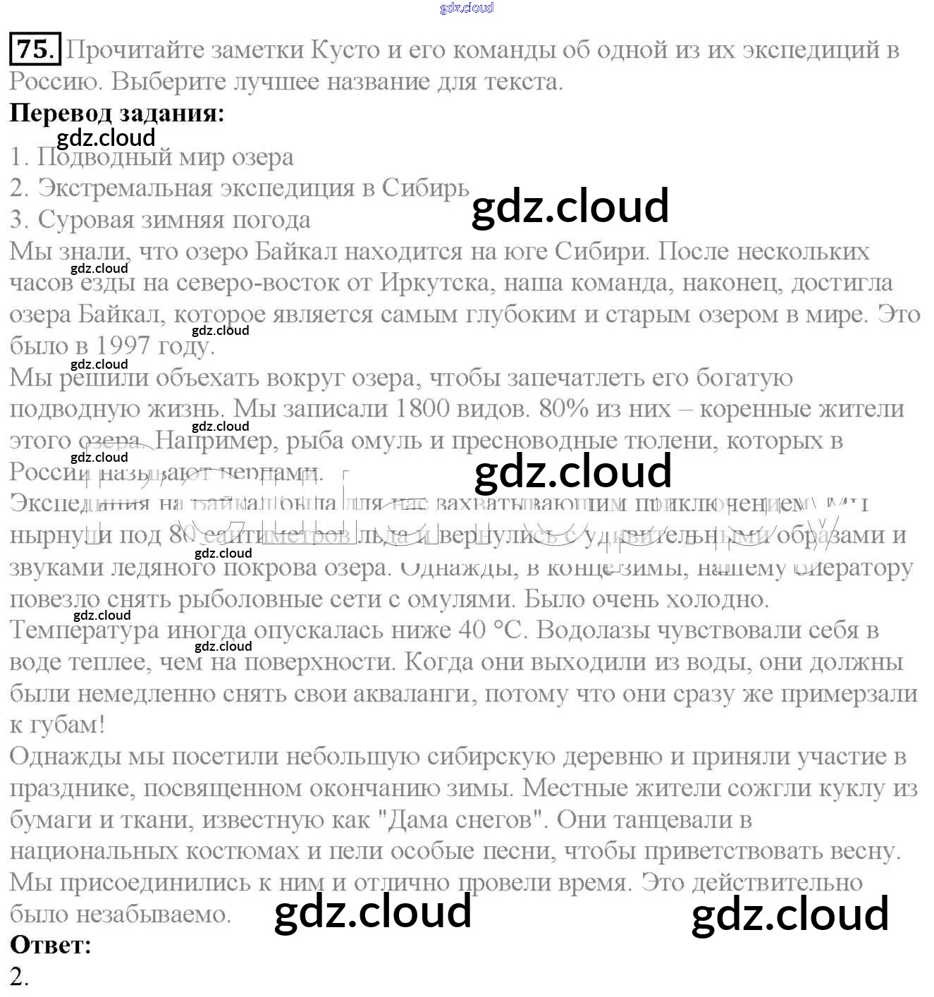 Ответ на задание 75 Учебник Английский язык  за 6 (шестой) класс Биболетова, Денисенко, Трубанева Enjoy English  2015, 2019