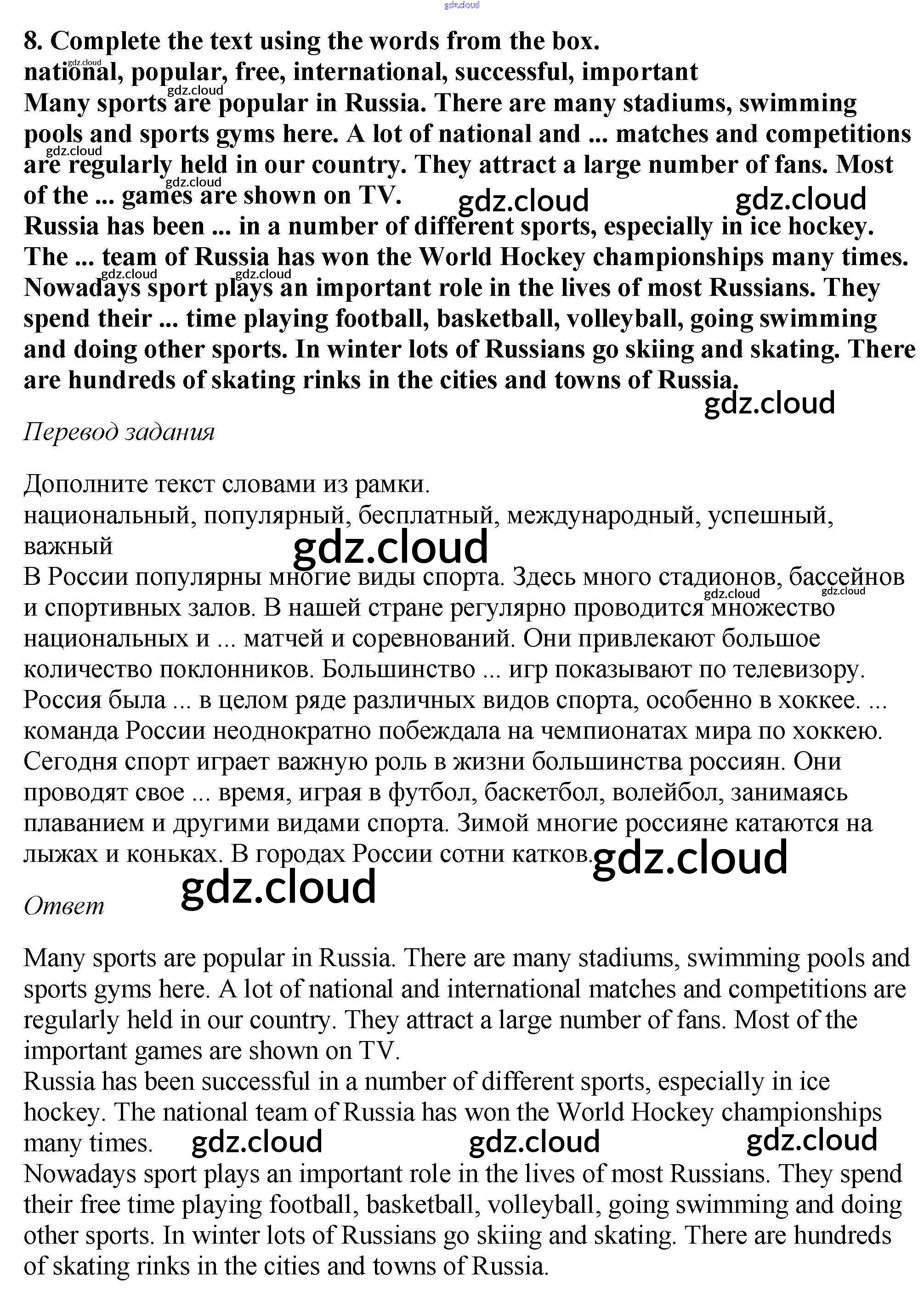 учебник 2019 / unit 4 / homework / 8