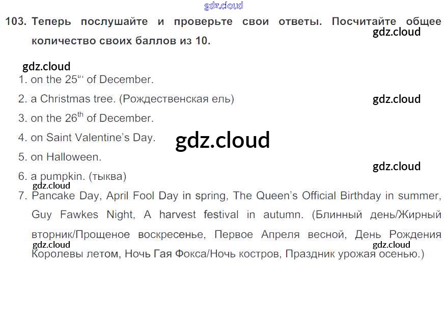Ответ на задание 103 Учебник Английский язык  за 6 (шестой) класс Биболетова, Денисенко, Трубанева Enjoy English  2015, 2019