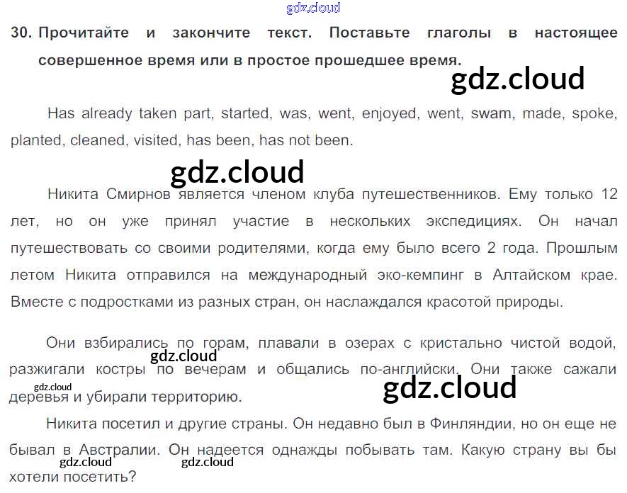 Ответ на задание 30 Учебник Английский язык  за 6 (шестой) класс Биболетова, Денисенко, Трубанева Enjoy English  2015, 2019