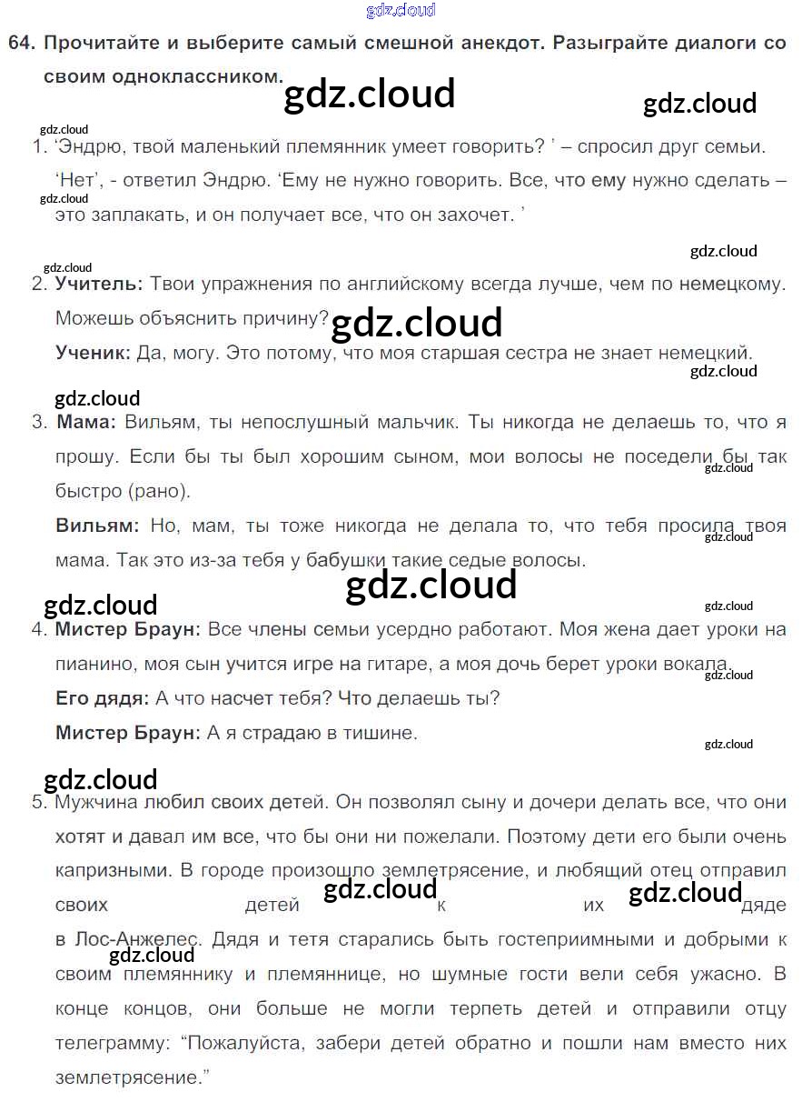 Ответ на задание 64 Учебник Английский язык  за 6 (шестой) класс Биболетова, Денисенко, Трубанева Enjoy English  2015, 2019