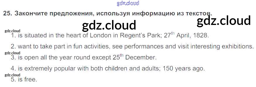 Ответ на задание 25 Учебник Английский язык  за 6 (шестой) класс Биболетова, Денисенко, Трубанева Enjoy English  2015, 2019