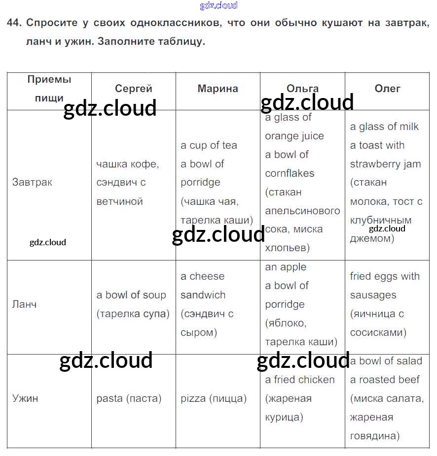 Ответ на задание 44 Учебник Английский язык  за 6 (шестой) класс Биболетова, Денисенко, Трубанева Enjoy English  2015, 2019