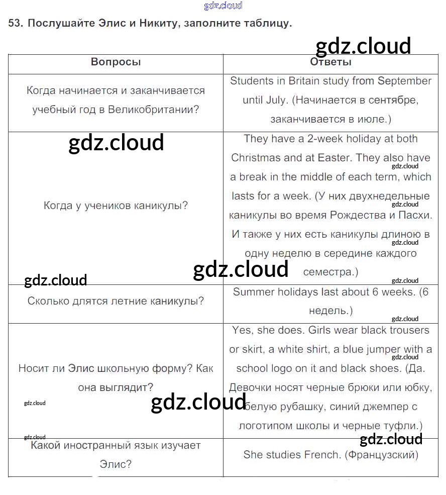 Ответ на задание 53 Учебник Английский язык  за 6 (шестой) класс Биболетова, Денисенко, Трубанева Enjoy English  2015, 2019