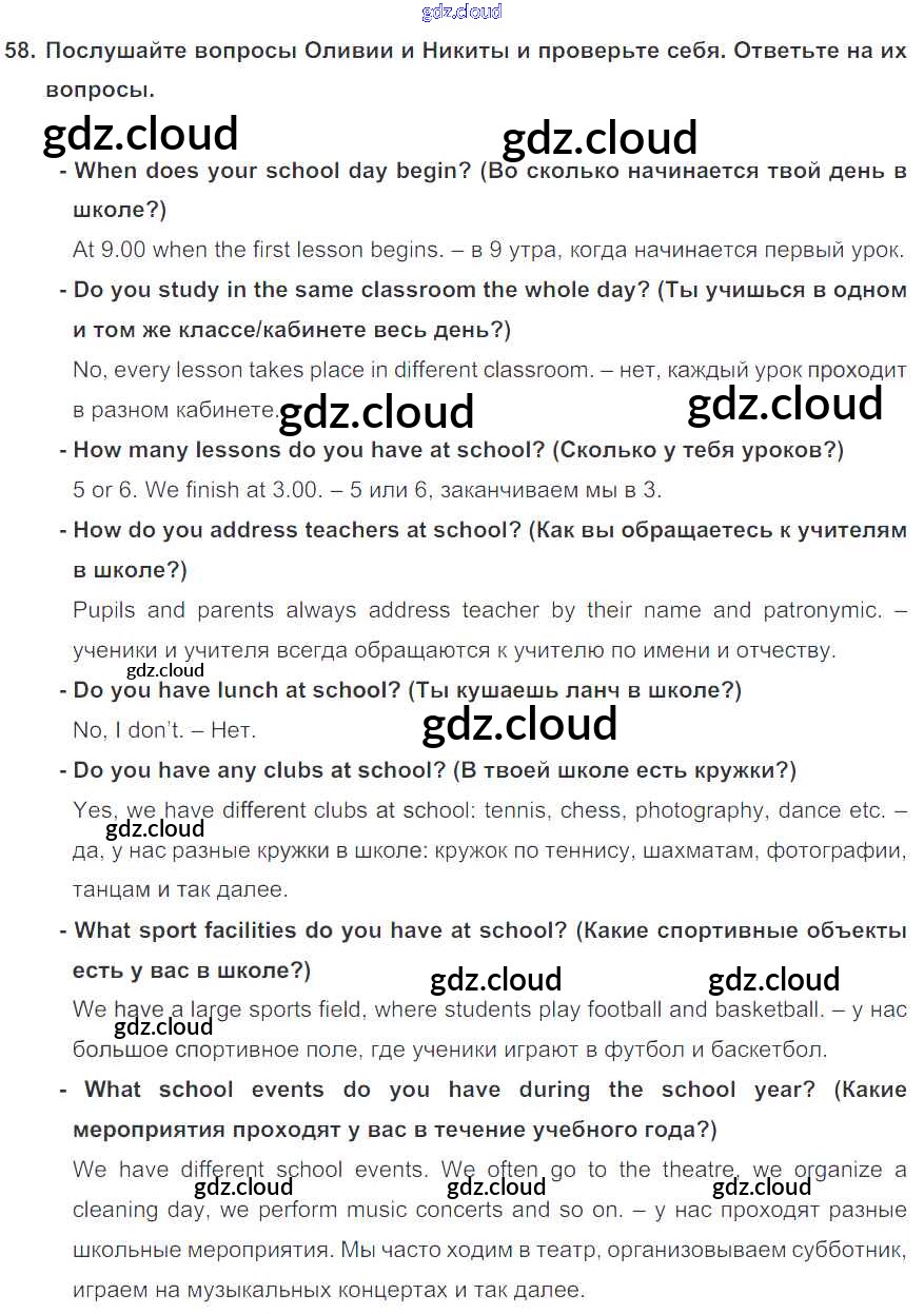 Ответ на задание 58 Учебник Английский язык  за 6 (шестой) класс Биболетова, Денисенко, Трубанева Enjoy English  2015, 2019
