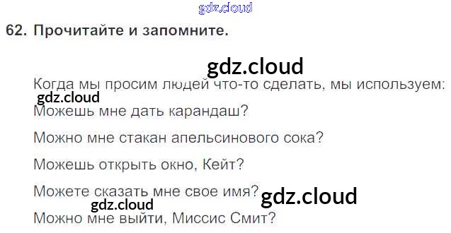 Ответ на задание 62 Учебник Английский язык  за 6 (шестой) класс Биболетова, Денисенко, Трубанева Enjoy English  2015, 2019
