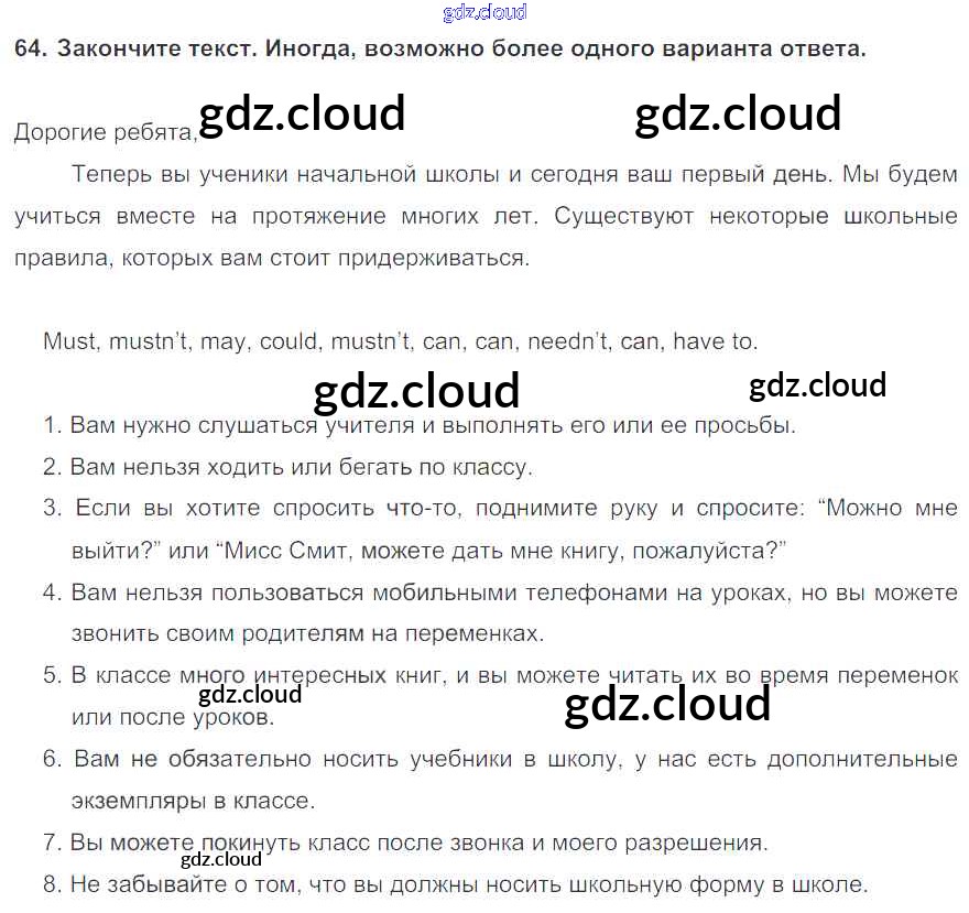 Ответ на задание 64 Учебник Английский язык  за 6 (шестой) класс Биболетова, Денисенко, Трубанева Enjoy English  2015, 2019