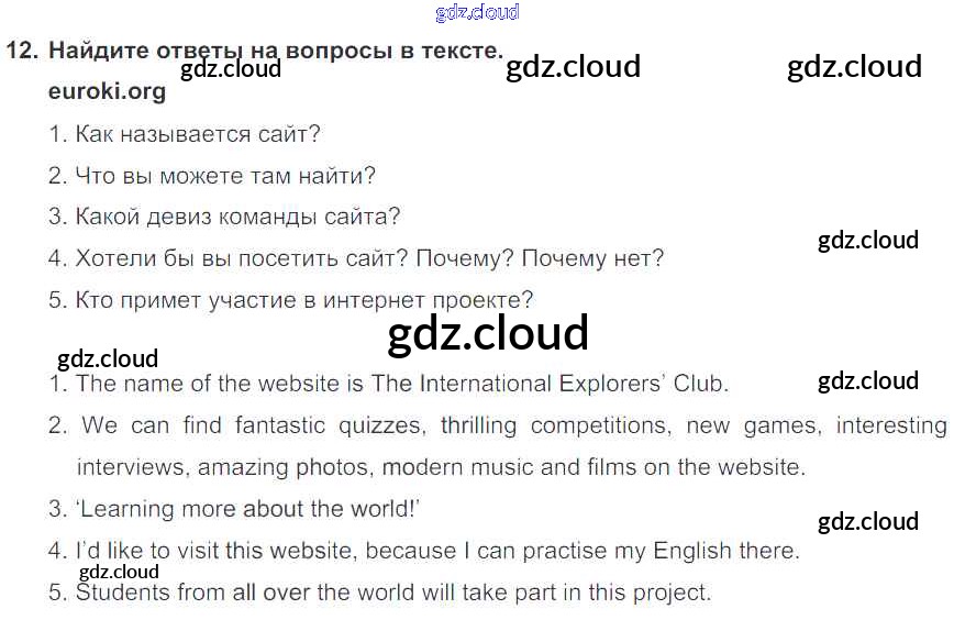 Ответ на задание 12 Учебник Английский язык за 6 (шестой) класс Биболетова, Денисенко, Трубанева Enjoy English 2015, 2019