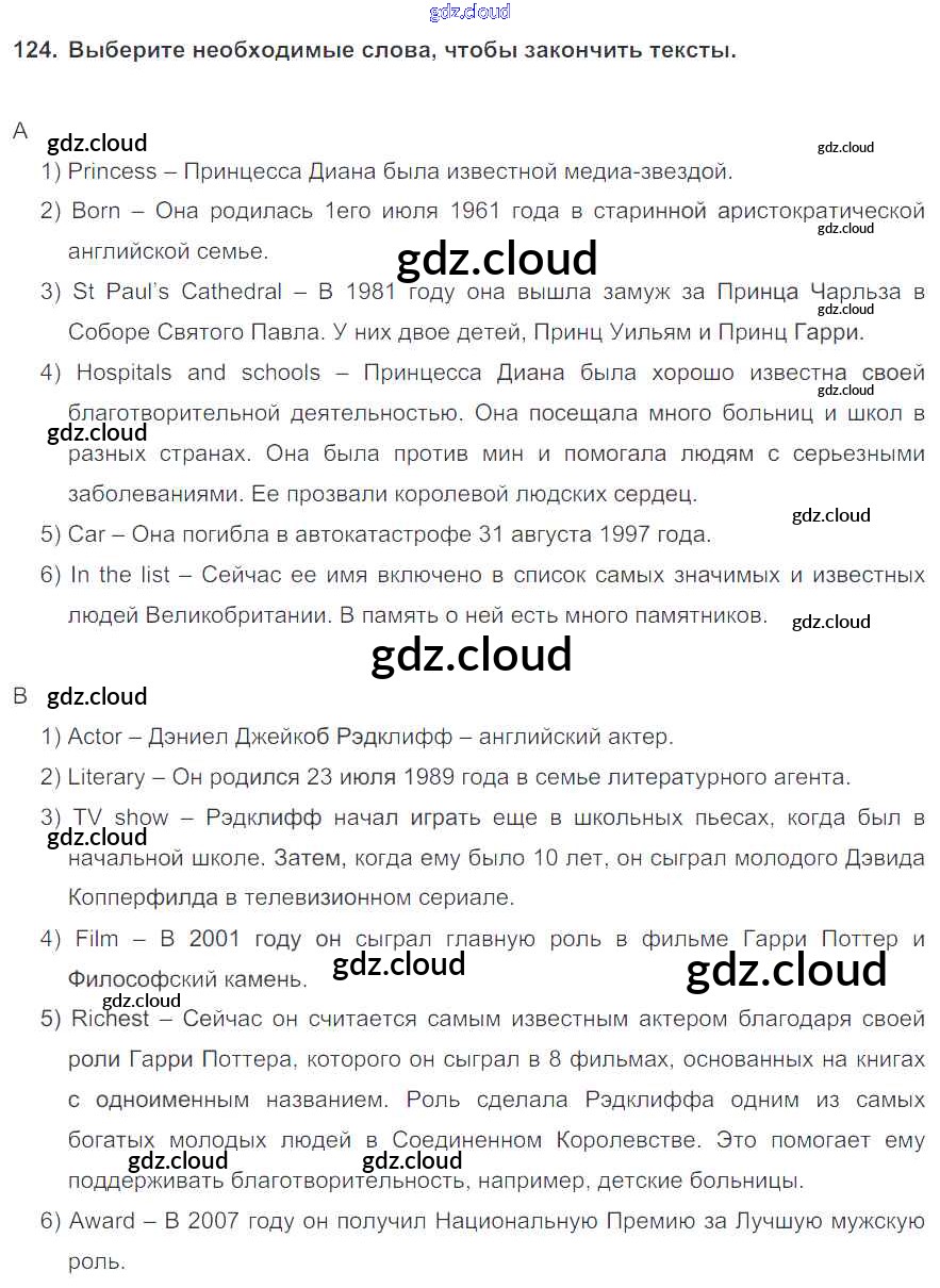 Ответ на задание 124 Учебник Английский язык  за 6 (шестой) класс Биболетова, Денисенко, Трубанева Enjoy English  2015, 2019