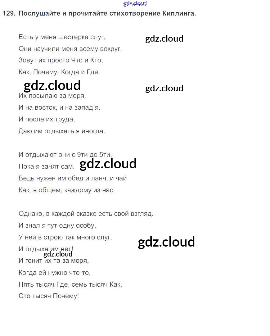 Ответ на задание 129 Учебник Английский язык  за 6 (шестой) класс Биболетова, Денисенко, Трубанева Enjoy English  2015, 2019