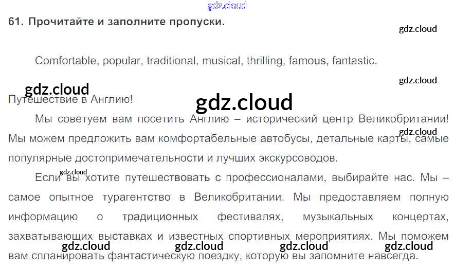 Ответ на задание 61 Учебник Английский язык  за 6 (шестой) класс Биболетова, Денисенко, Трубанева Enjoy English  2015, 2019