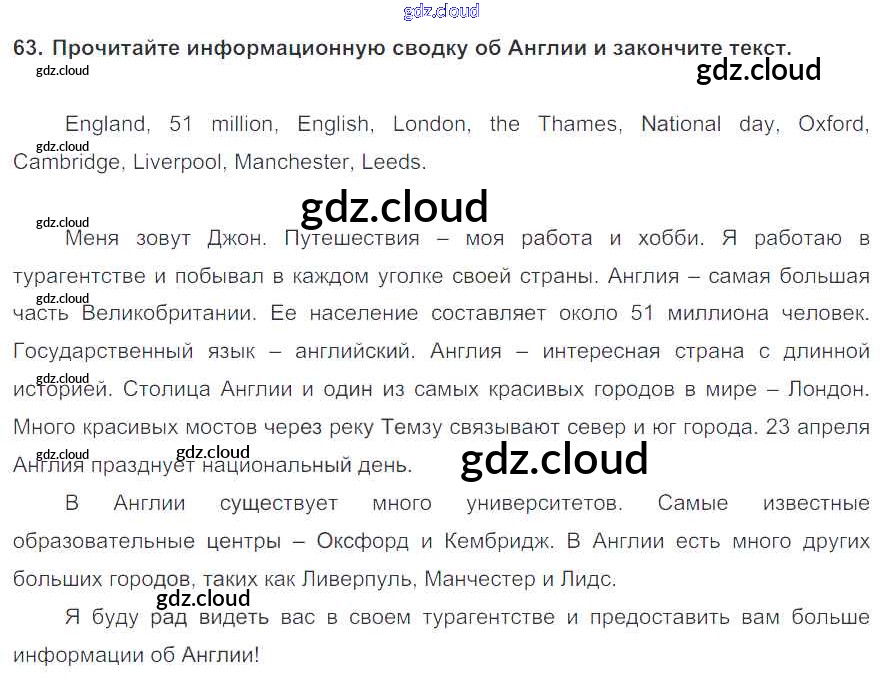 Ответ на задание 63 Учебник Английский язык  за 6 (шестой) класс Биболетова, Денисенко, Трубанева Enjoy English  2015, 2019