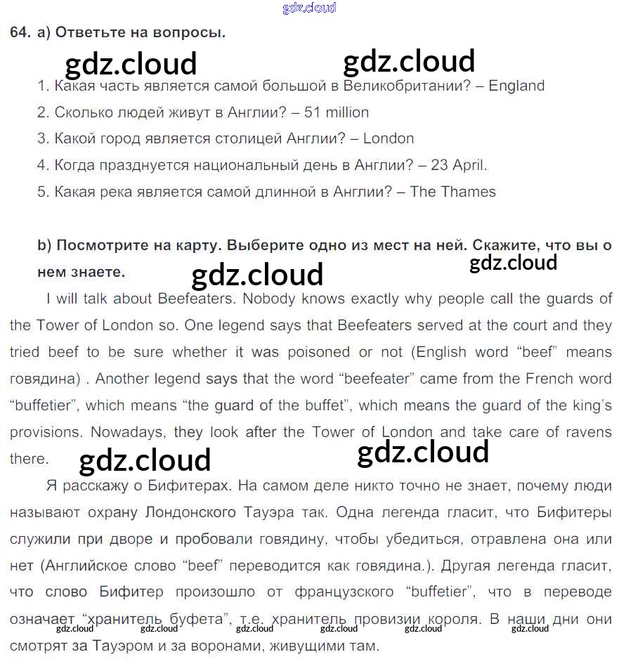 Ответ на задание 64 Учебник Английский язык  за 6 (шестой) класс Биболетова, Денисенко, Трубанева Enjoy English  2015, 2019