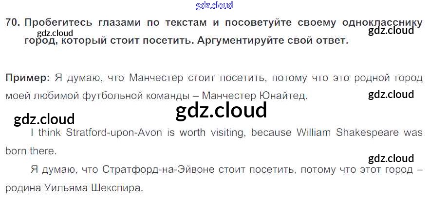 Ответ на задание 70 Учебник Английский язык  за 6 (шестой) класс Биболетова, Денисенко, Трубанева Enjoy English  2015, 2019