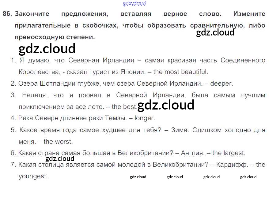 Ответ на задание 86 Учебник Английский язык  за 6 (шестой) класс Биболетова, Денисенко, Трубанева Enjoy English  2015, 2019