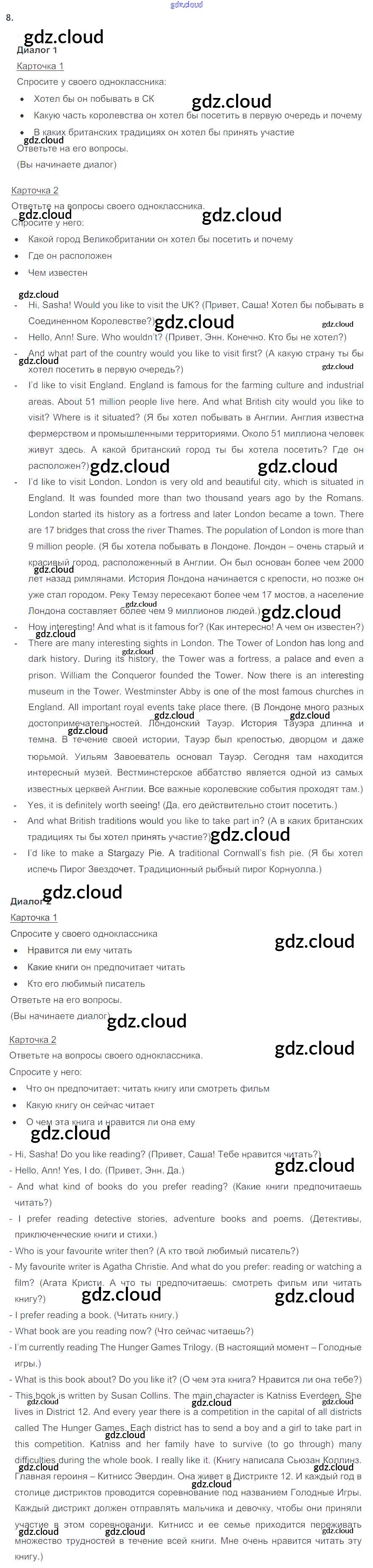 Ответ на задание 8 Учебник Английский язык  за 6 (шестой) класс Биболетова, Денисенко, Трубанева Enjoy English  2015, 2019