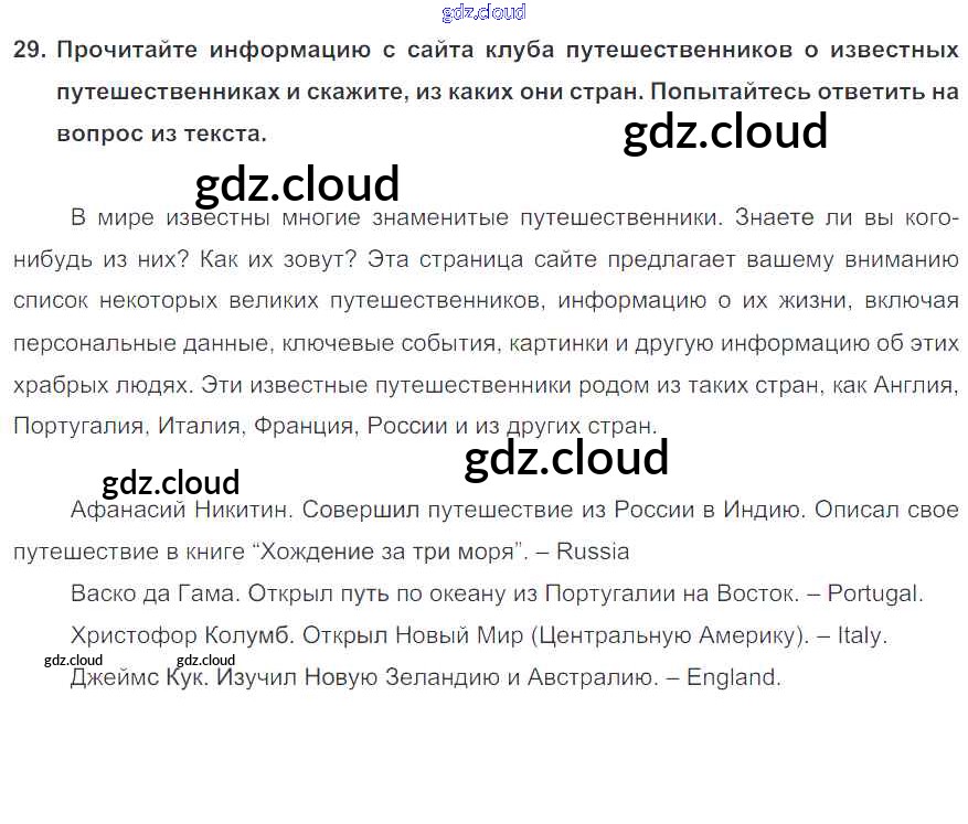 Ответ на задание 29 Учебник Английский язык  за 6 (шестой) класс Биболетова, Денисенко, Трубанева Enjoy English  2015, 2019
