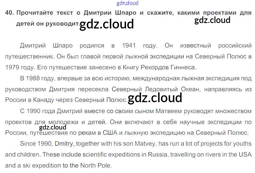 Ответ на задание 40 Учебник Английский язык  за 6 (шестой) класс Биболетова, Денисенко, Трубанева Enjoy English  2015, 2019