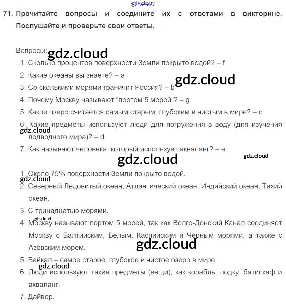 Ответ на задание 71 Учебник Английский язык  за 6 (шестой) класс Биболетова, Денисенко, Трубанева Enjoy English  2015, 2019