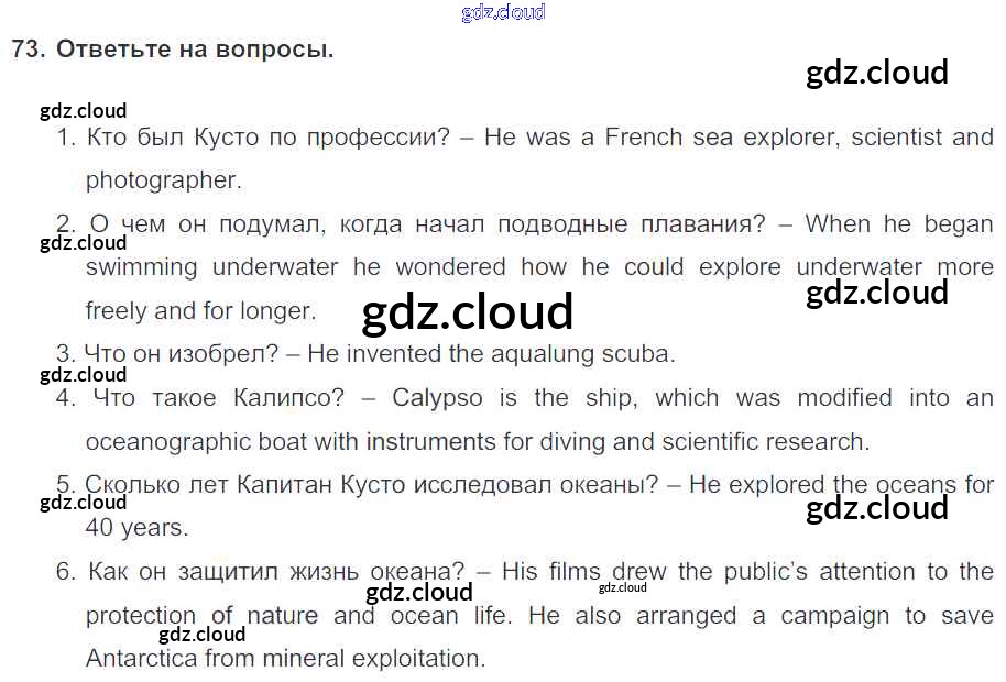 Ответ на задание 73 Учебник Английский язык  за 6 (шестой) класс Биболетова, Денисенко, Трубанева Enjoy English  2015, 2019
