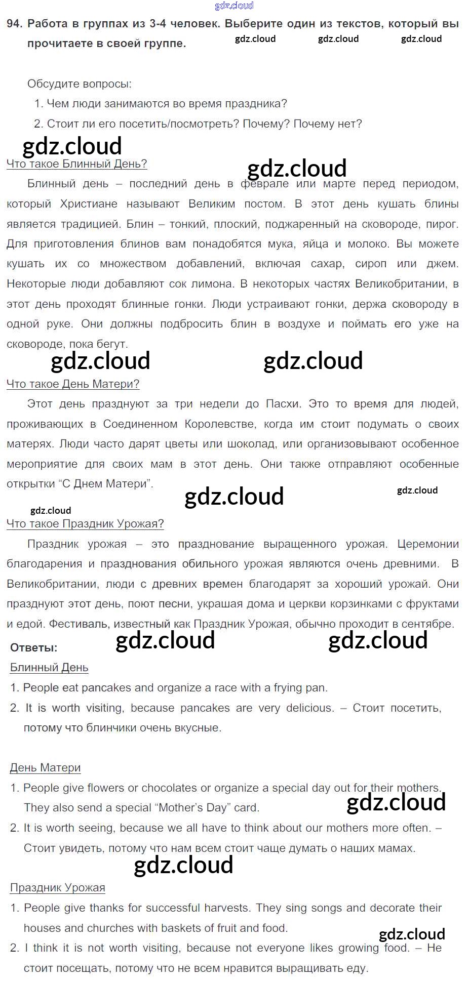 Ответ на задание 94 Учебник Английский язык  за 6 (шестой) класс Биболетова, Денисенко, Трубанева Enjoy English  2015, 2019