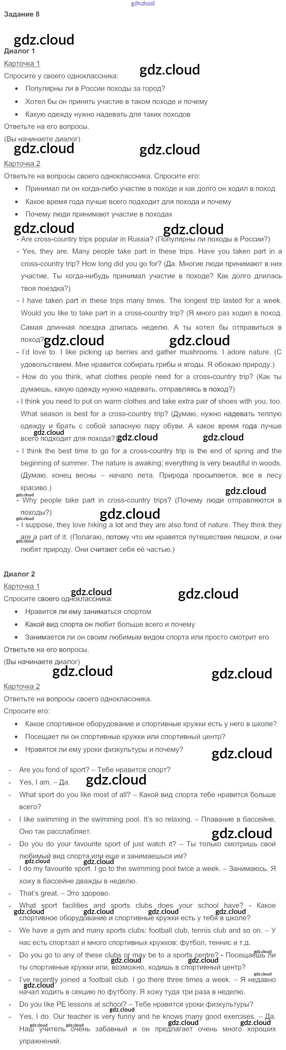Ответ на задание 8 Учебник Английский язык  за 6 (шестой) класс Биболетова, Денисенко, Трубанева Enjoy English  2015, 2019