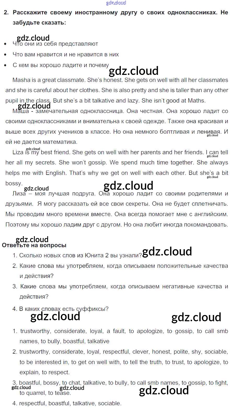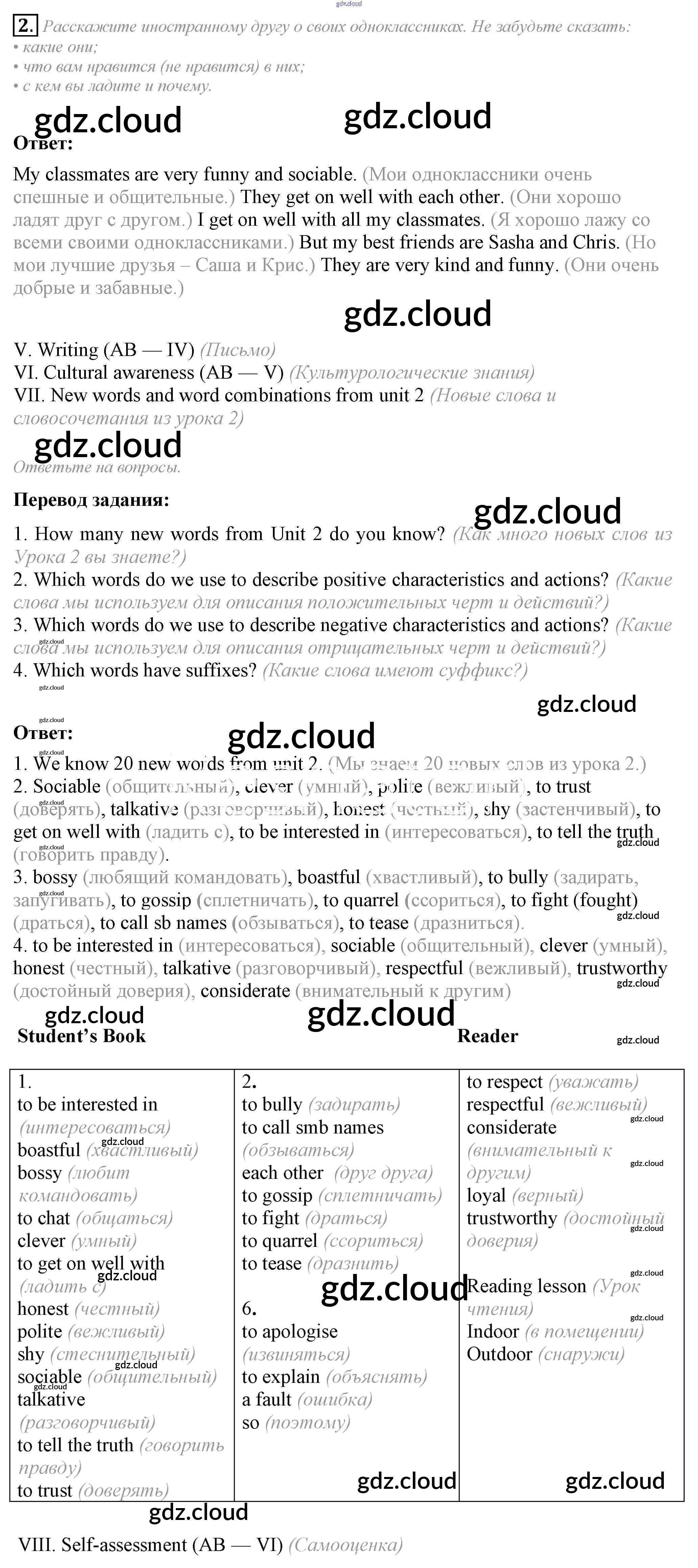 Lesson 8-9 Ответы к Unit 2. What are you like? по Английскому языку 6 класс Учебник Кузовлев Академический школьный учебник   Просвещение