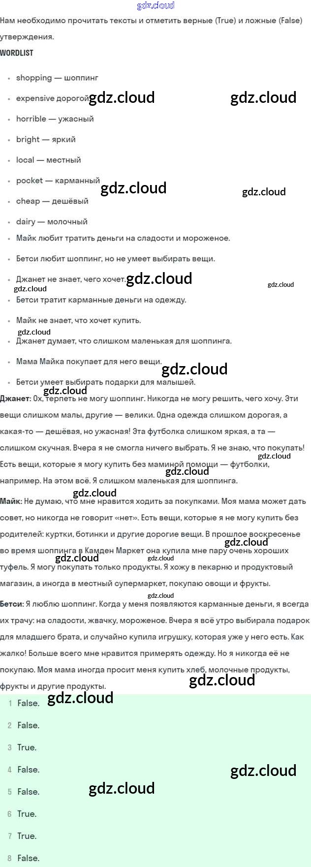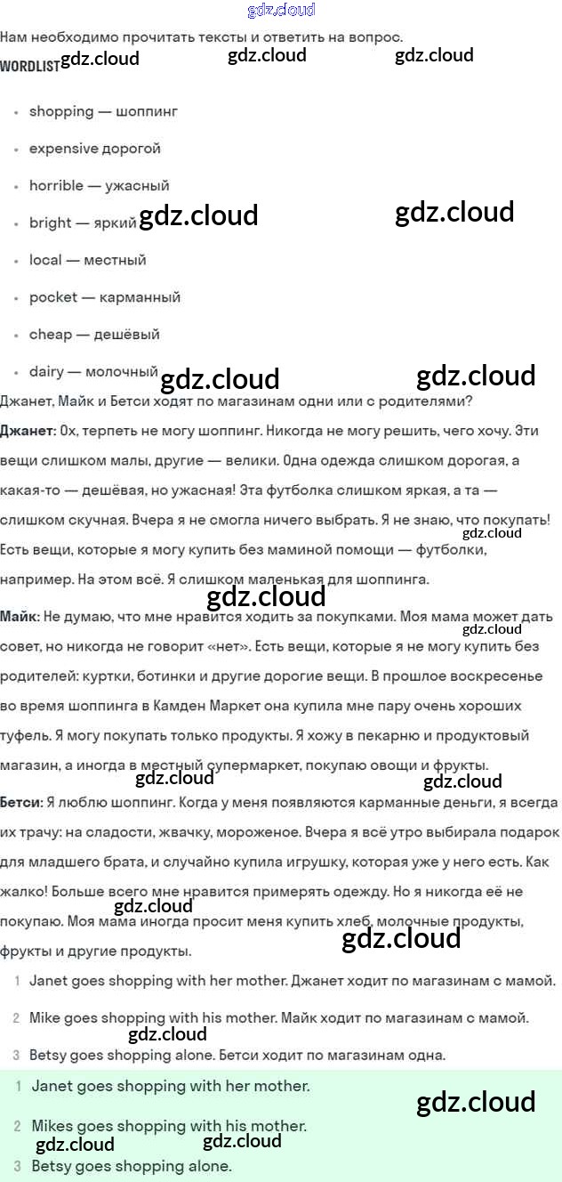 Lesson 6 Ответы к Unit 4. Do you like to go shopping? по Английскому языку 6 класс Учебник Кузовлев Академический школьный учебник   Просвещение