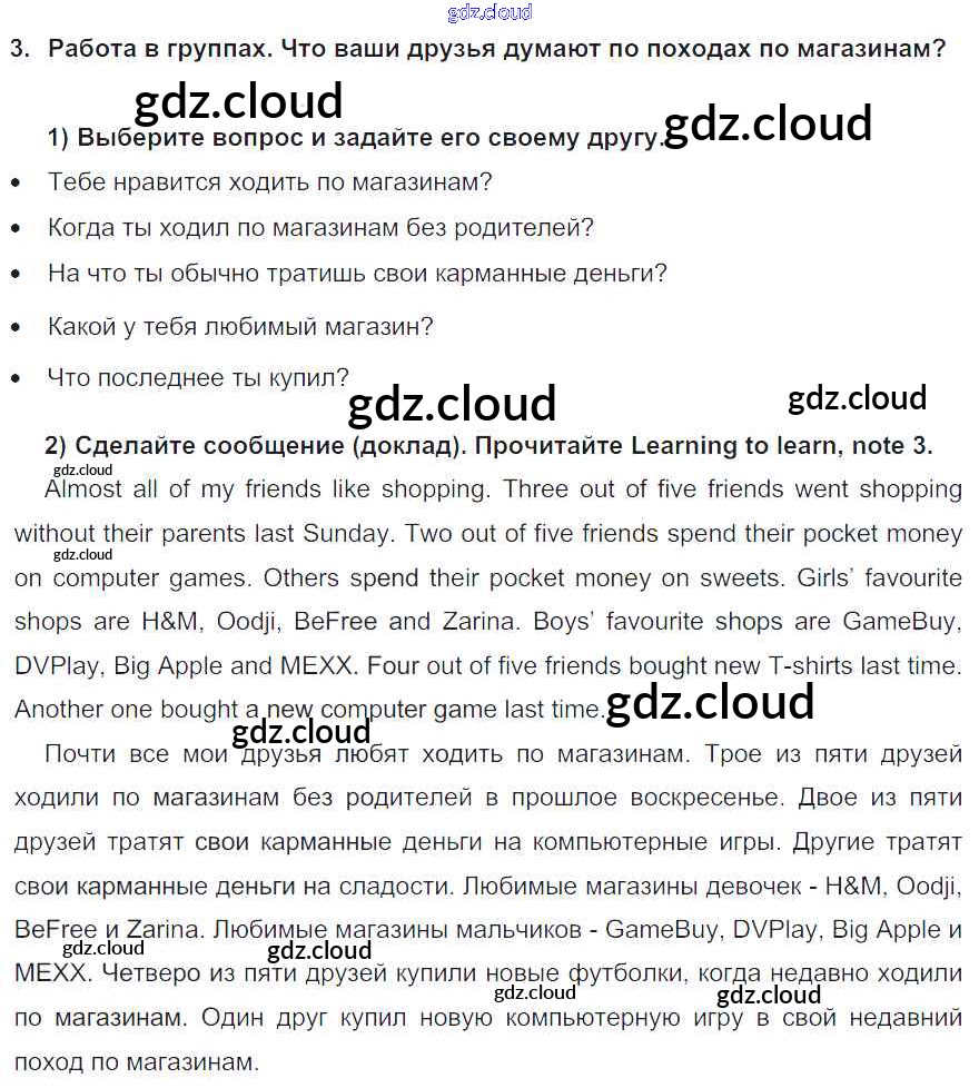 Lesson 6 Ответы к Unit 4. Do you like to go shopping? по Английскому языку 6 класс Учебник Кузовлев Академический школьный учебник   Просвещение