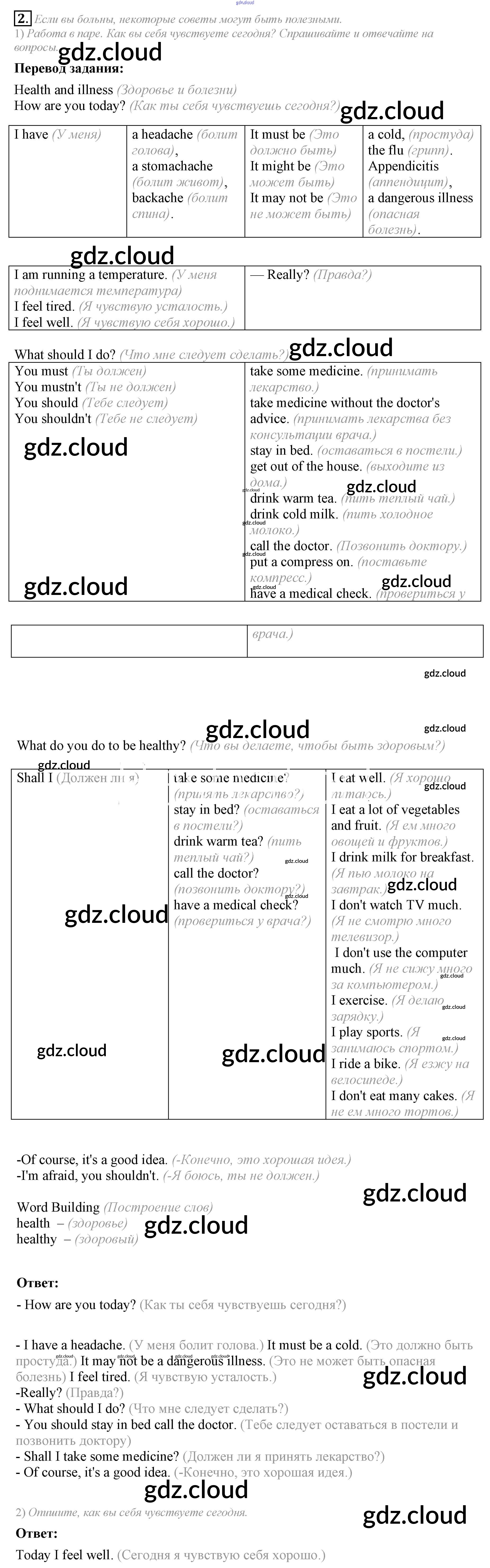 Lesson 2-3 Ответы к Unit 5. Do you care about your health? по Английскому языку 6 класс Учебник Кузовлев Академический школьный учебник   Просвещение
