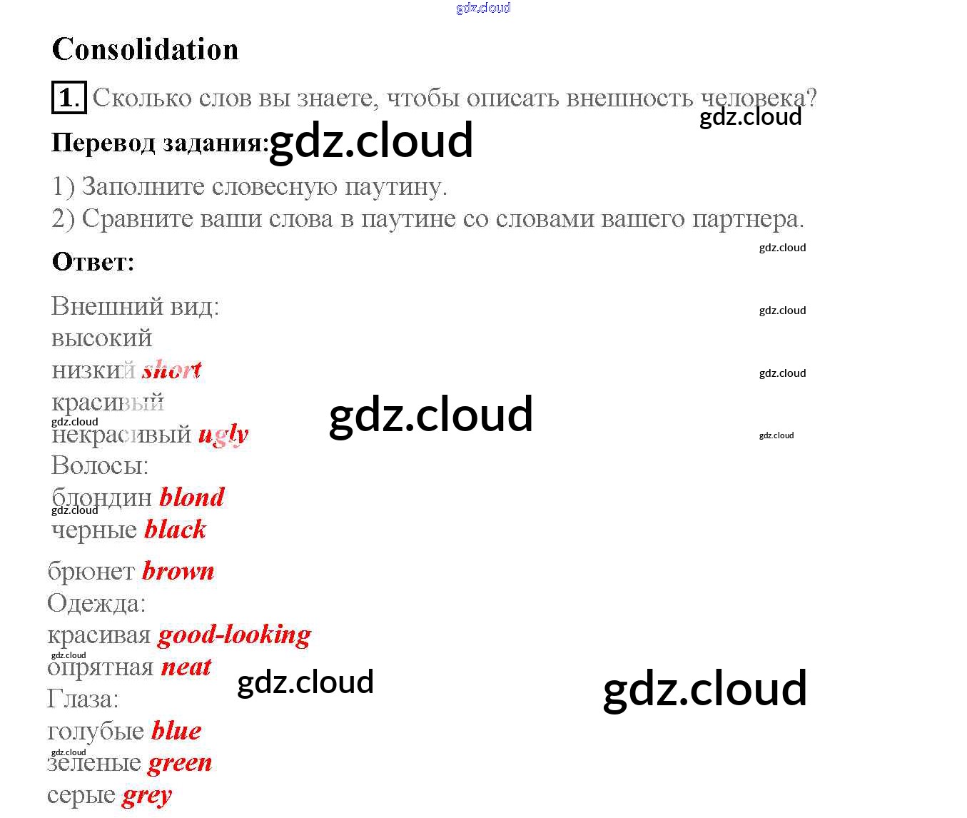 Consolidation Ответы к Unit 1 по Английскому языку 6 класс Рабочая тетрадь Кузовлев    Просвещение