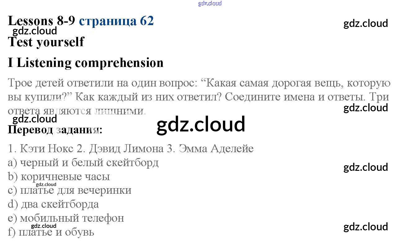 Ответ на задание 62 Рабочая тетрадь Английский язык  за 6 (шестой) класс Кузовлев, Лапа, Перегудова   2015