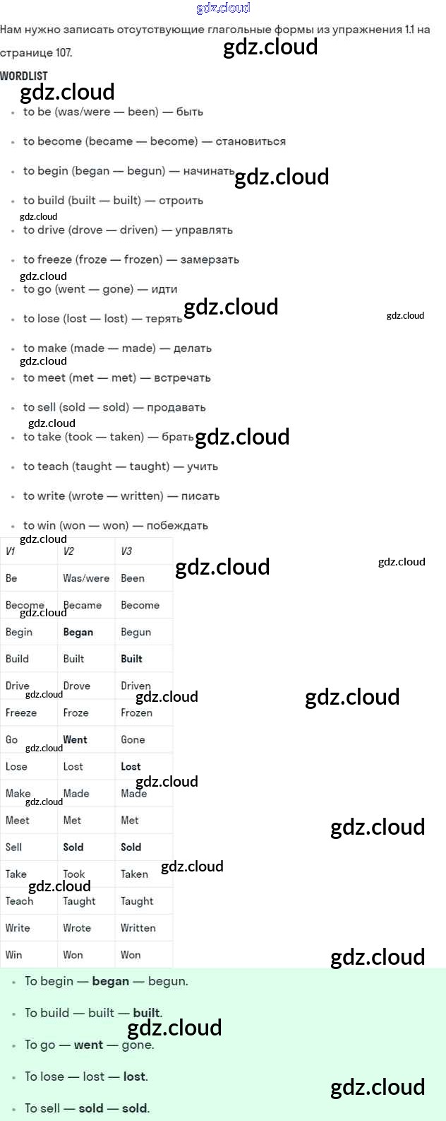 Ответ на задание 107 Рабочая тетрадь Английский язык  за 6 (шестой) класс Кузовлев, Лапа, Перегудова   2015