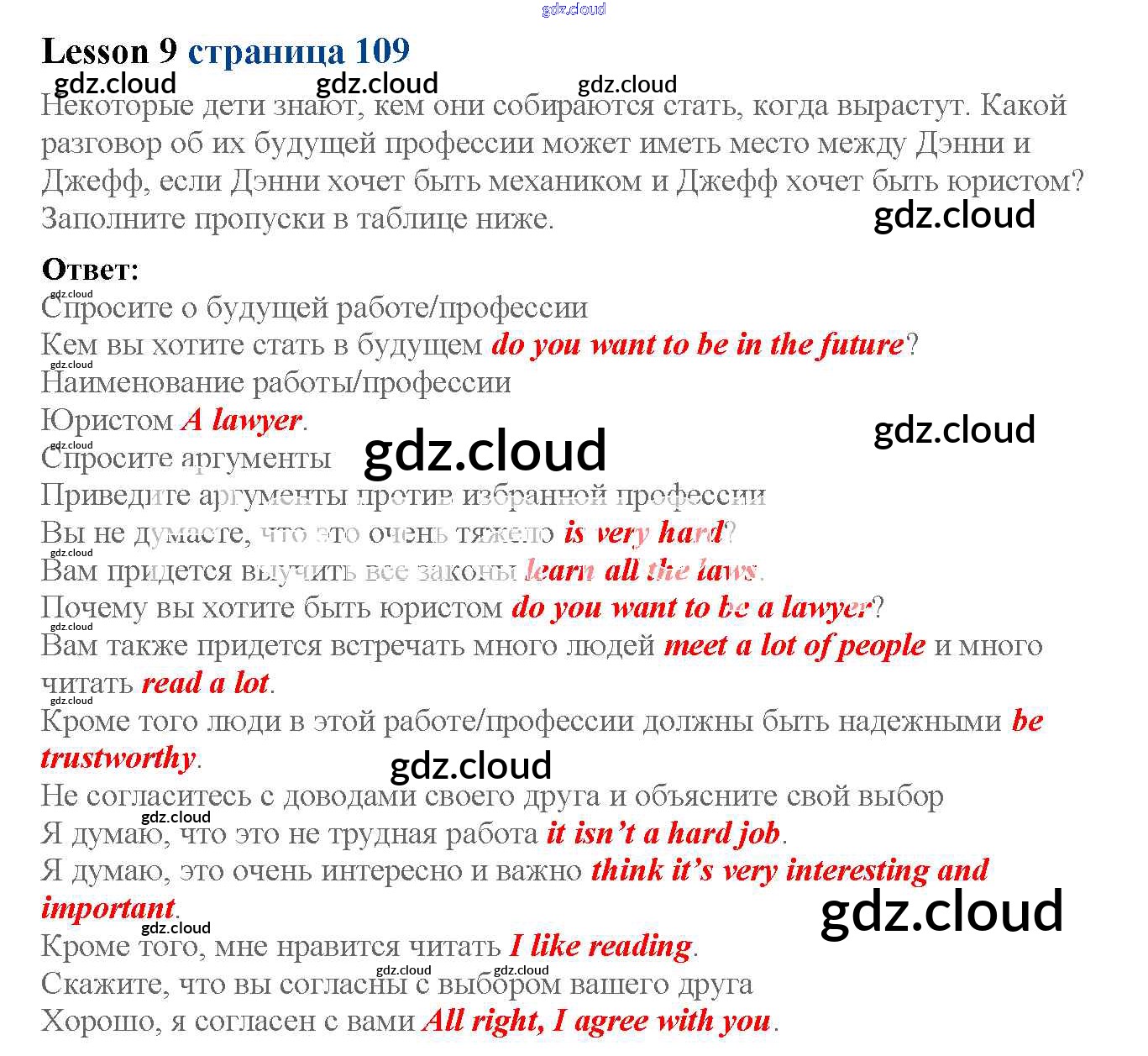 Ответ на задание 109 Рабочая тетрадь Английский язык  за 6 (шестой) класс Кузовлев, Лапа, Перегудова   2015