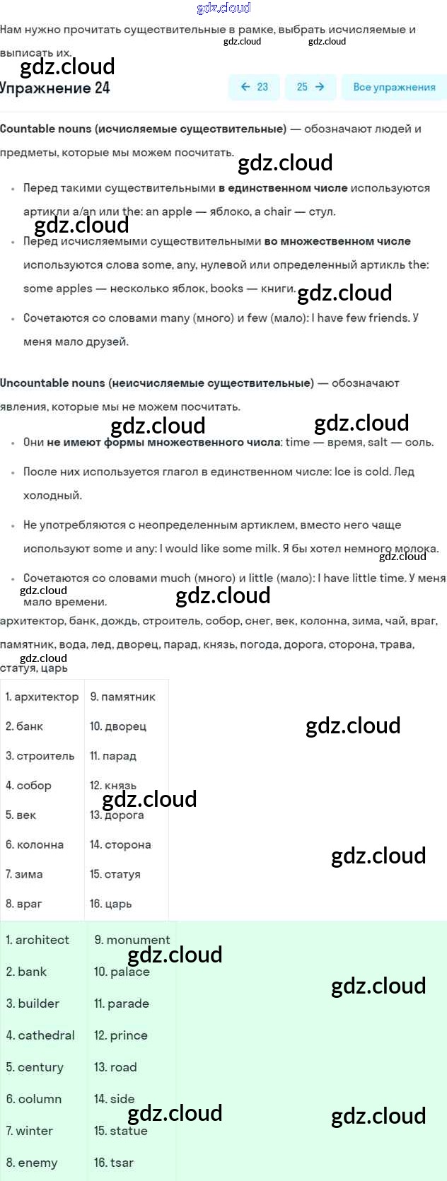Ответ на задание 24 Рабочая тетрадь Английский язык за 6 (шестой) класс Афанасьева, Михеева, Баранова Rainbow 2017