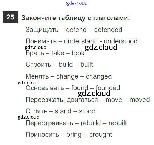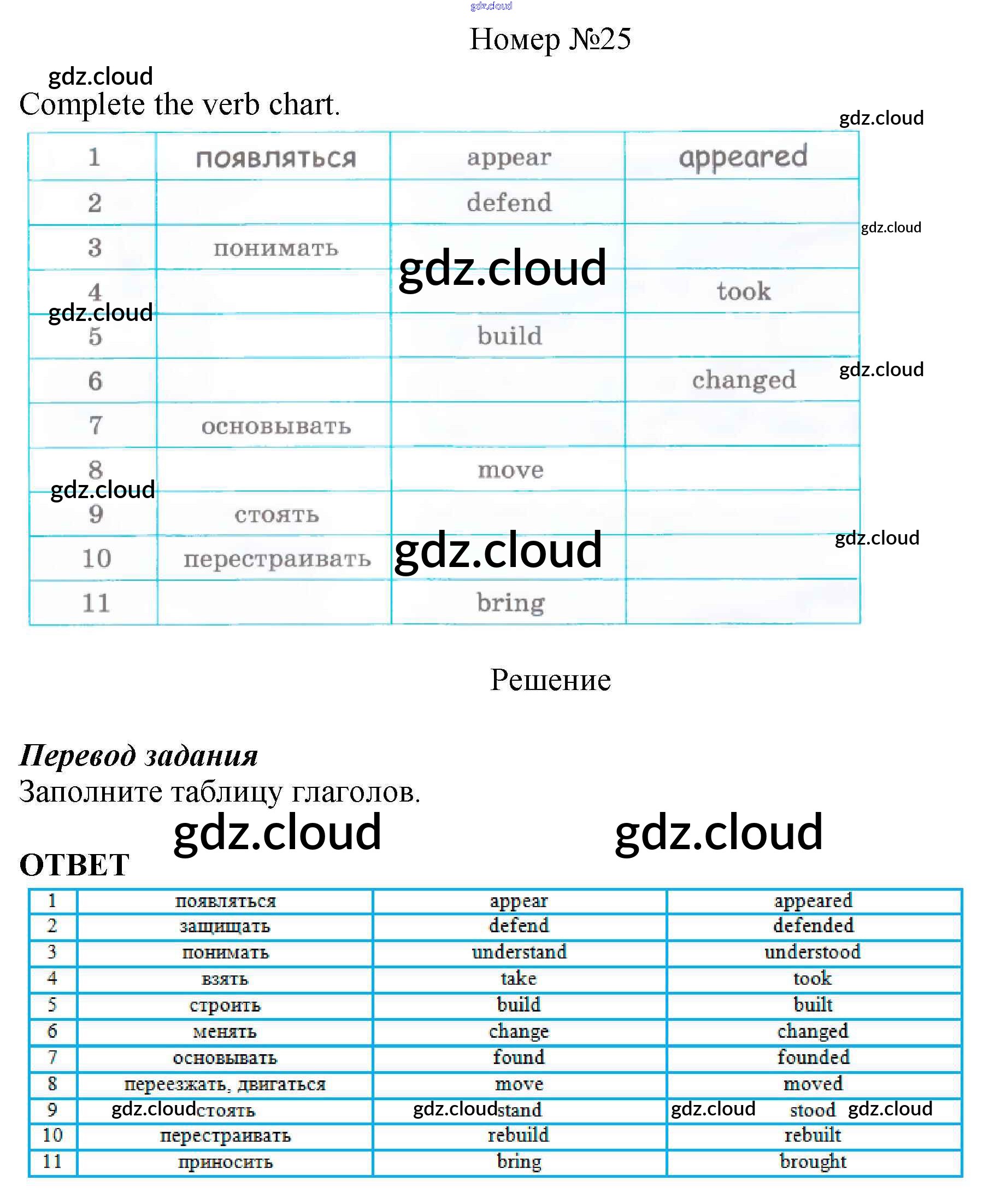 Ответ на задание 25 Рабочая тетрадь Английский язык  за 6 (шестой) класс Афанасьева, Михеева, Баранова Rainbow  2017
