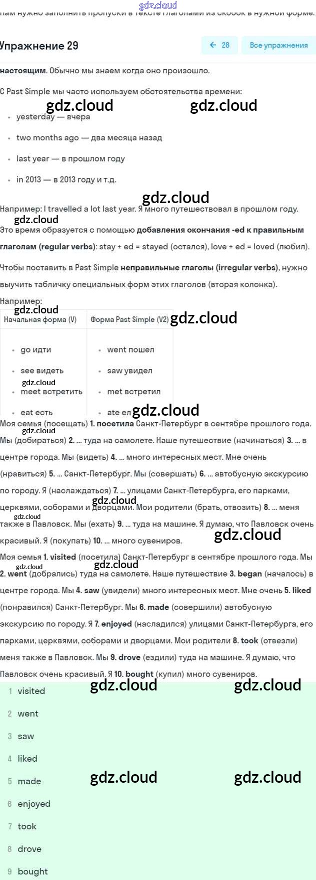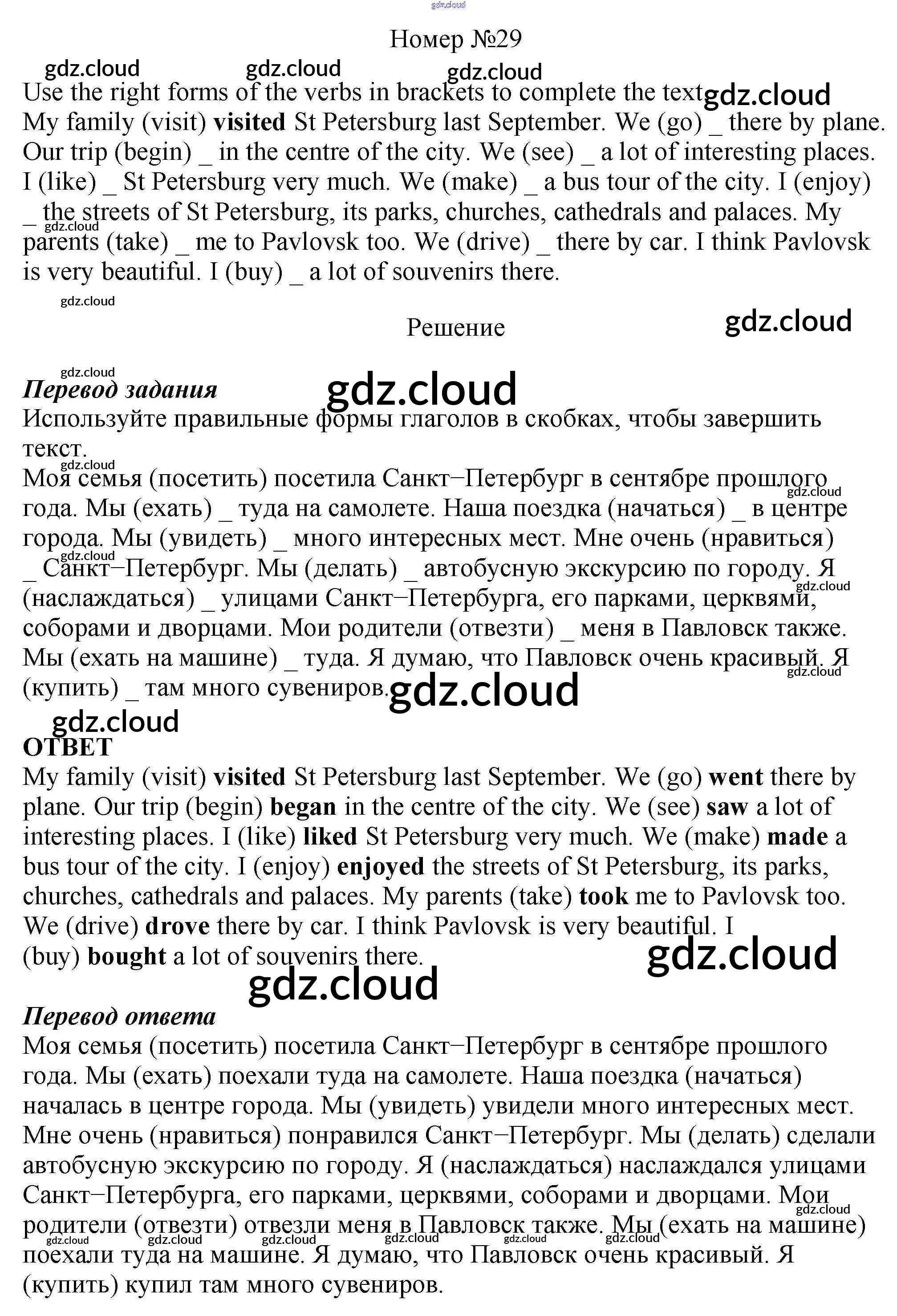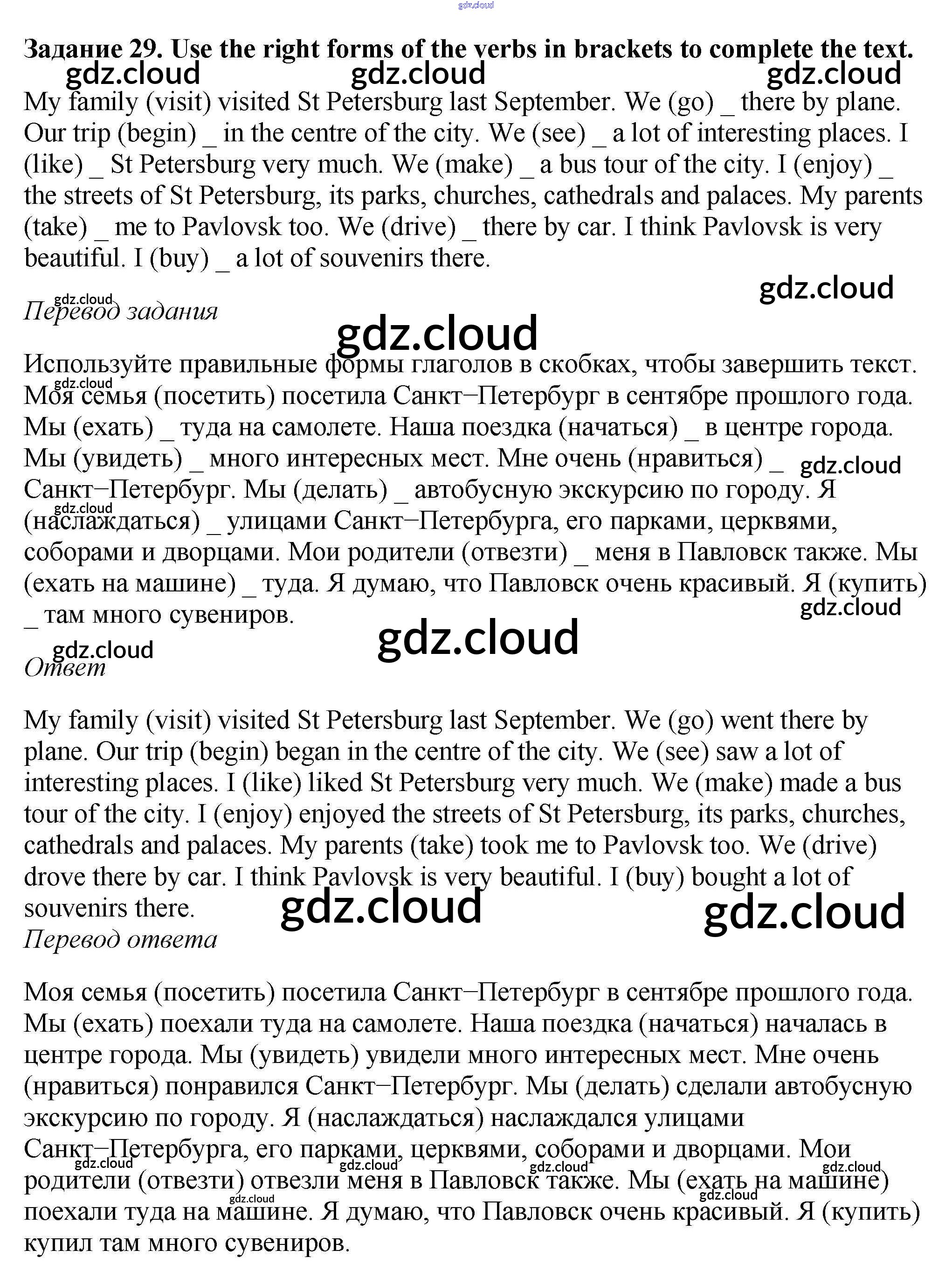Ответ на задание 29 Рабочая тетрадь Английский язык  за 6 (шестой) класс Афанасьева, Михеева, Баранова Rainbow  2017
