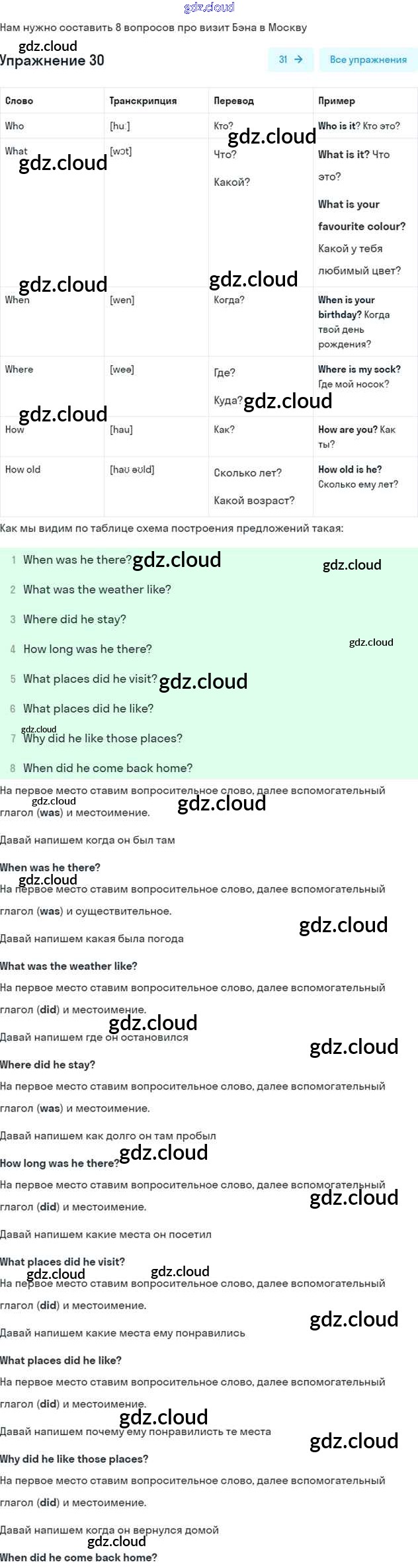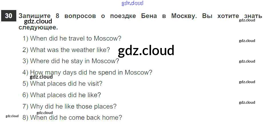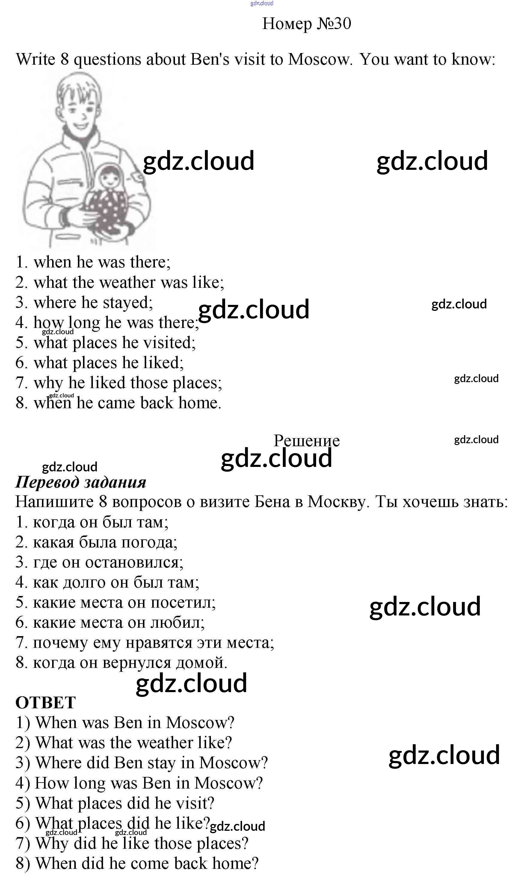 Ответ на задание 30 Рабочая тетрадь Английский язык  за 6 (шестой) класс Афанасьева, Михеева, Баранова Rainbow  2017