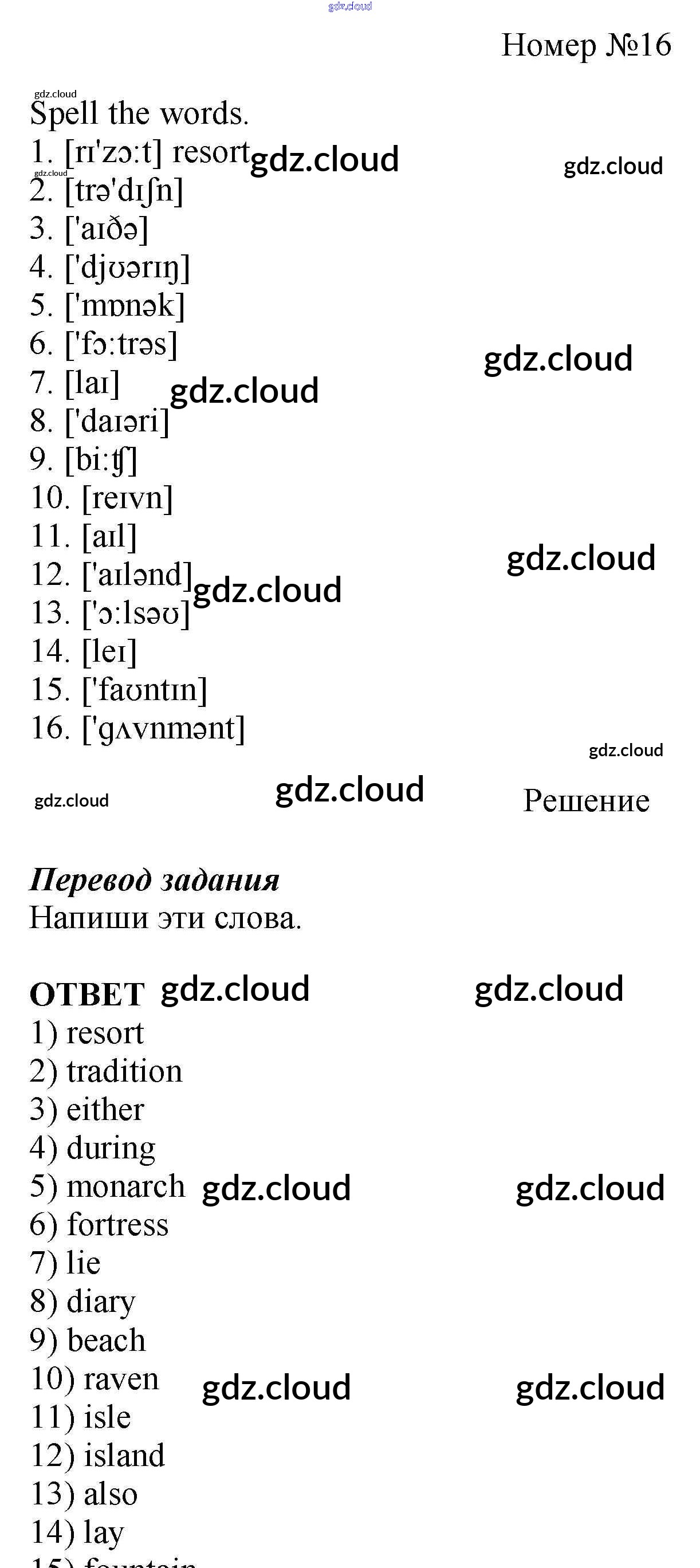 Ответ на задание 16 Рабочая тетрадь Английский язык  за 6 (шестой) класс Афанасьева, Михеева, Баранова Rainbow  2017