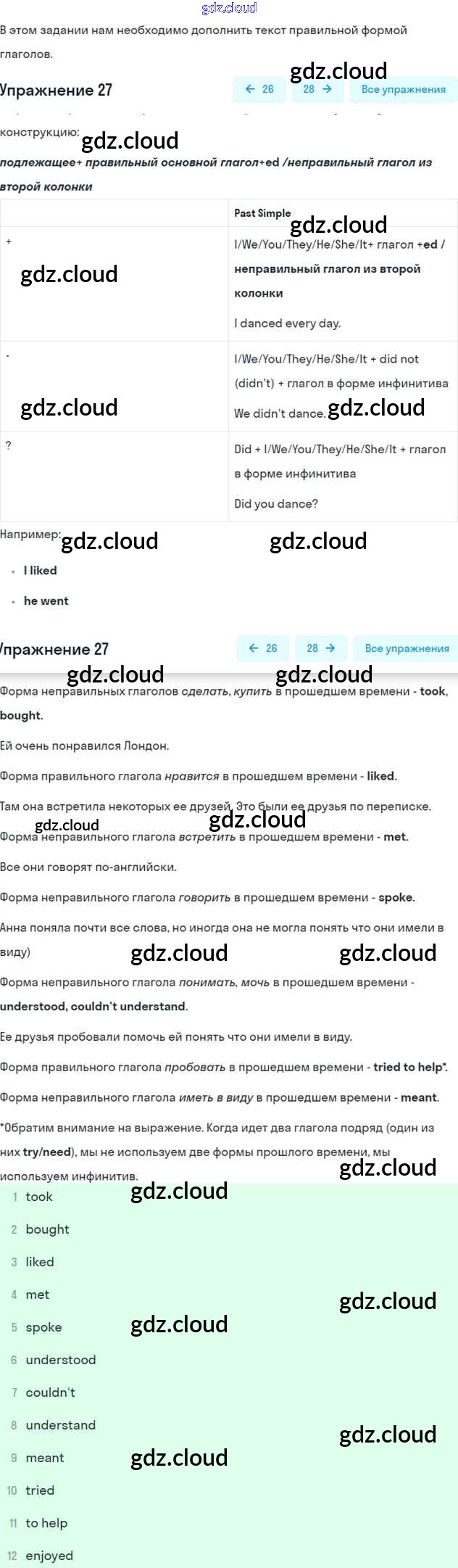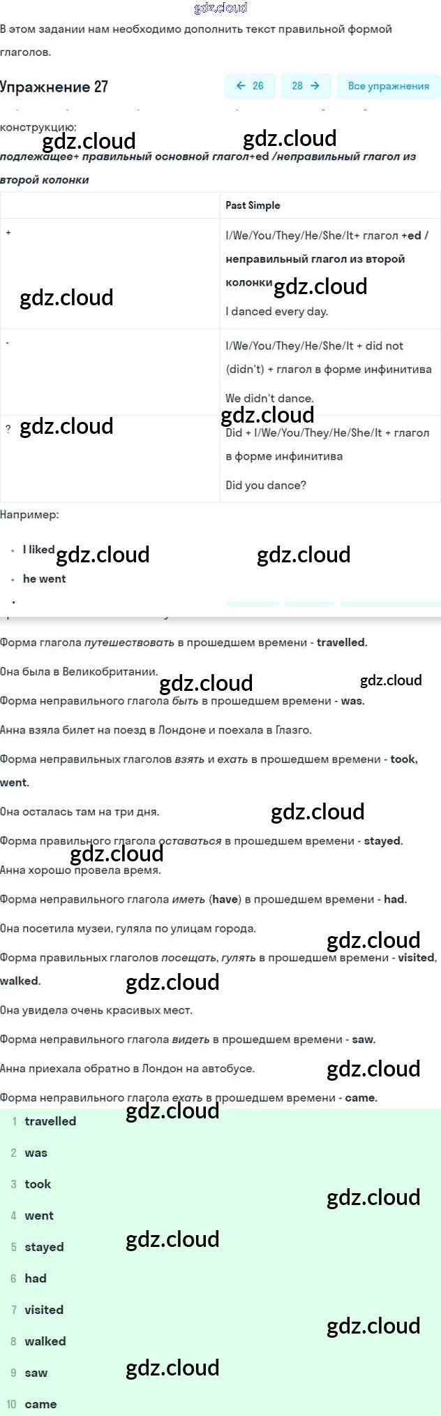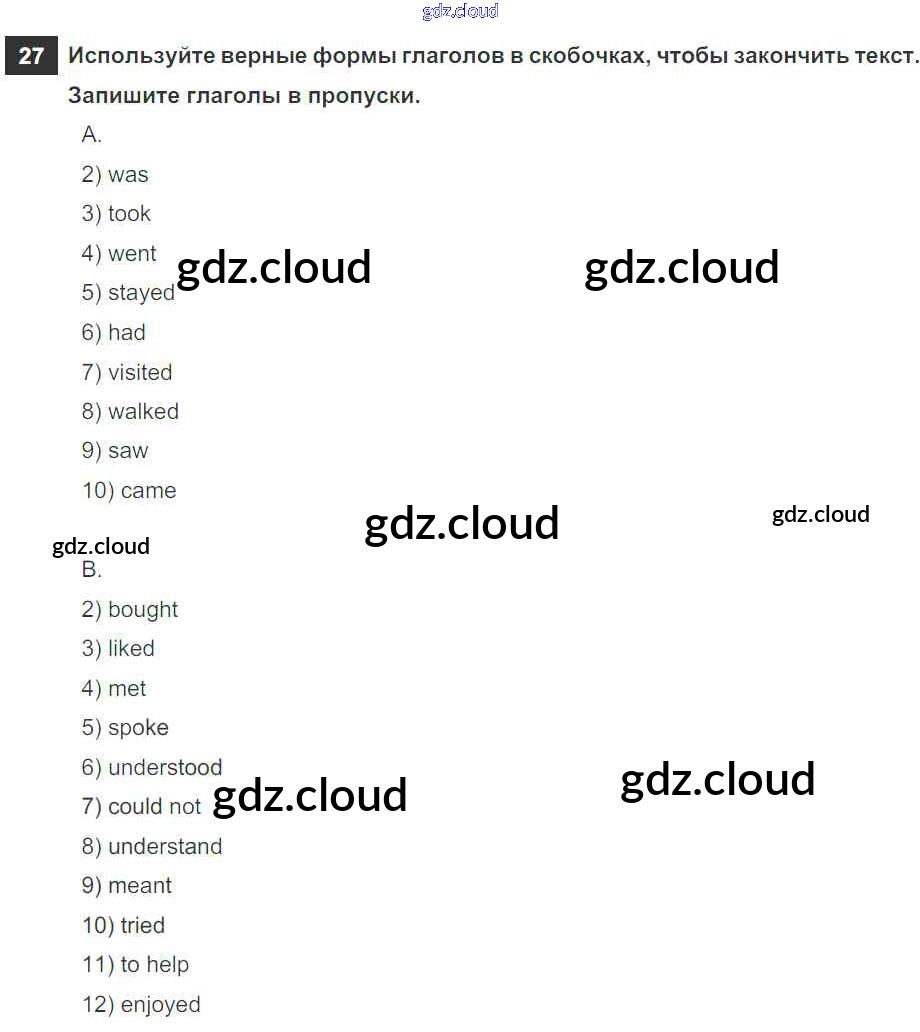Ответ на задание 27 Рабочая тетрадь Английский язык  за 6 (шестой) класс Афанасьева, Михеева, Баранова Rainbow  2017